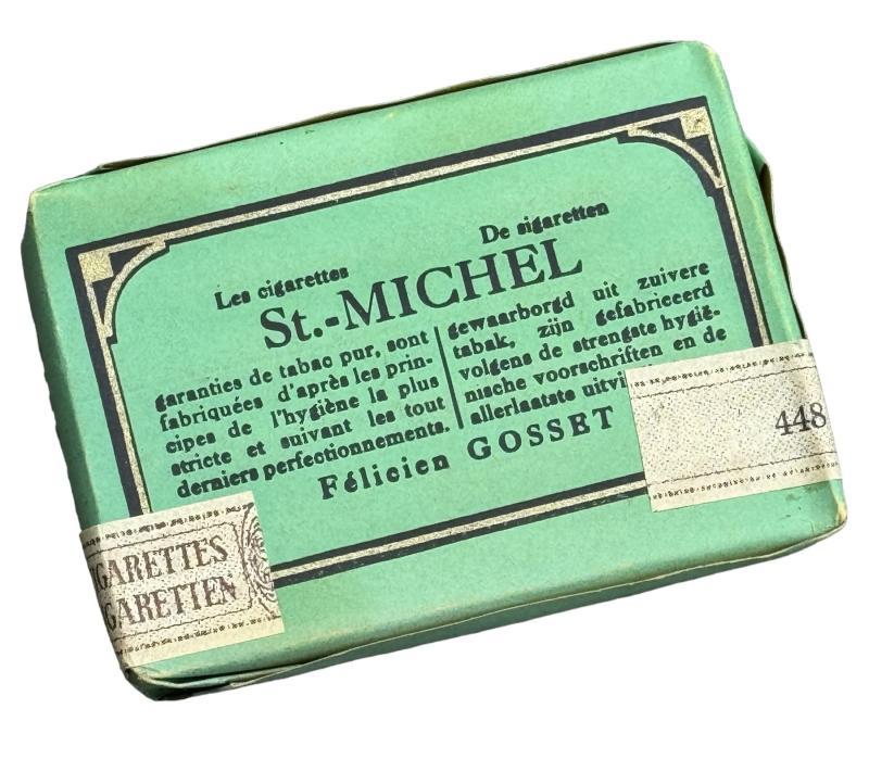 Belgium War-Time Cigarette Package Nice package of “St. Michel” Belgium war-time cigarettes with original seal and with content. Nice for display!