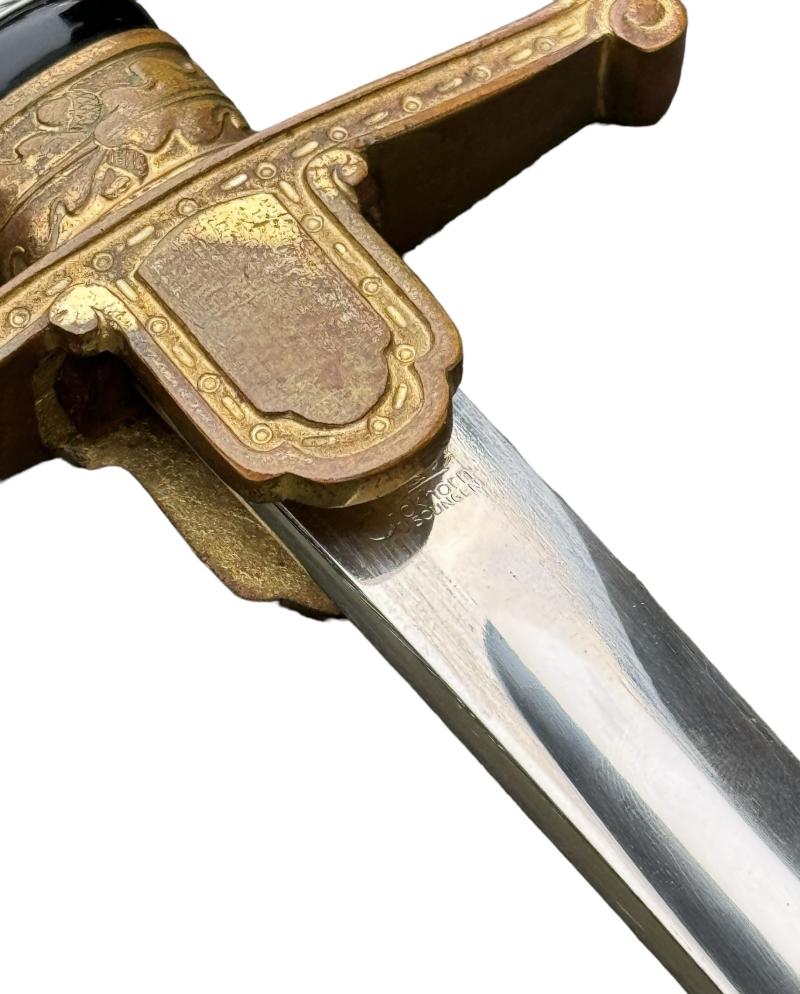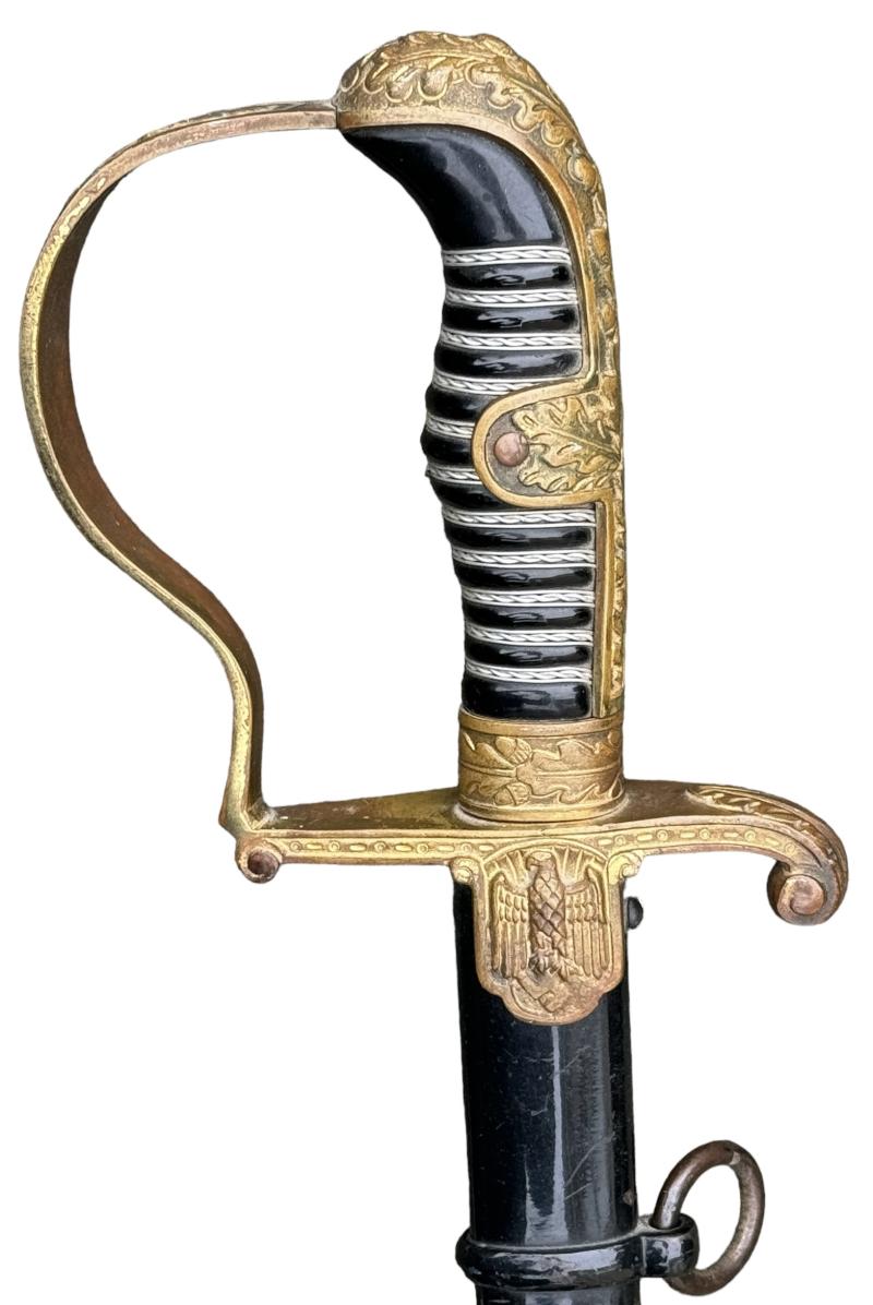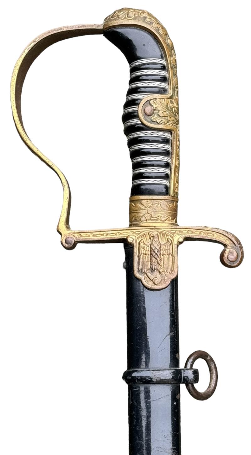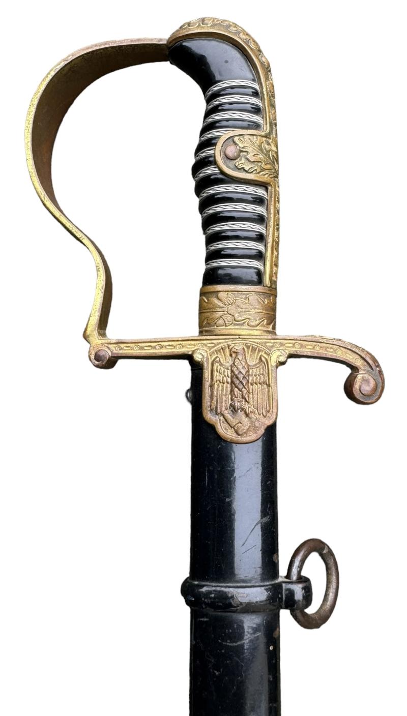 Made by “Eickhorn, Solingen” with its original metal scabbard. Scabbard has 98% of its original black paint. Overal a fantastic used Wehrmacht sword in outstanding condition. Great on a nice Wehrmacht Officers mannequin or as part of an edged weapon collection!