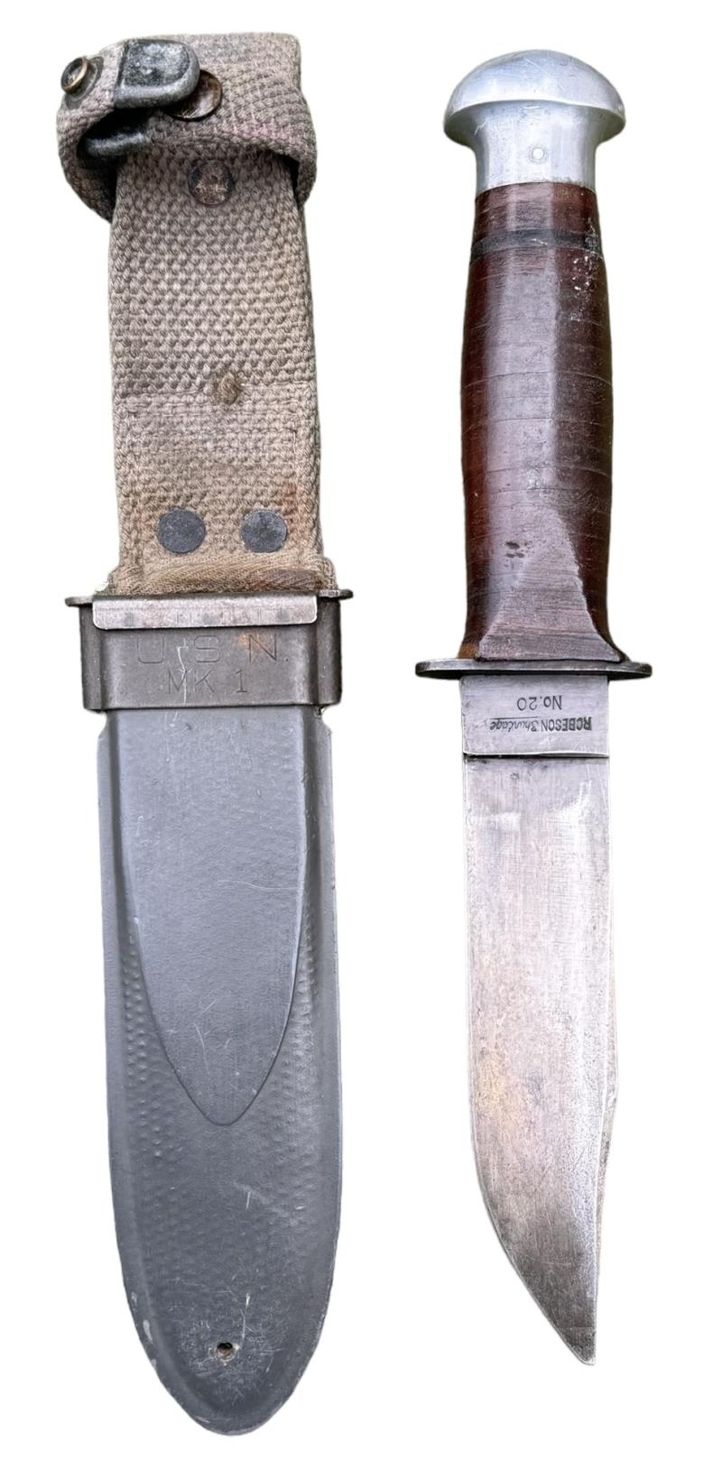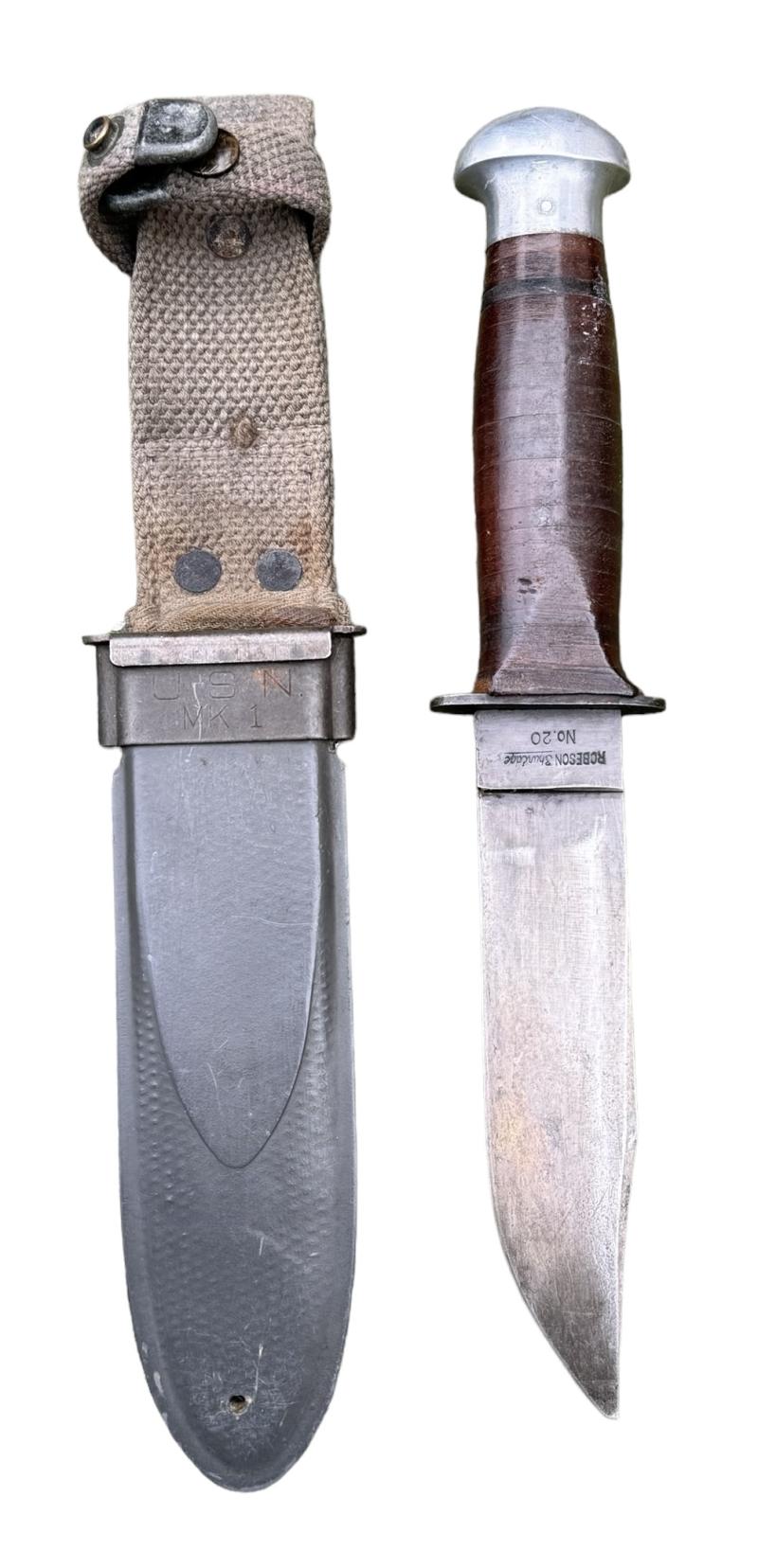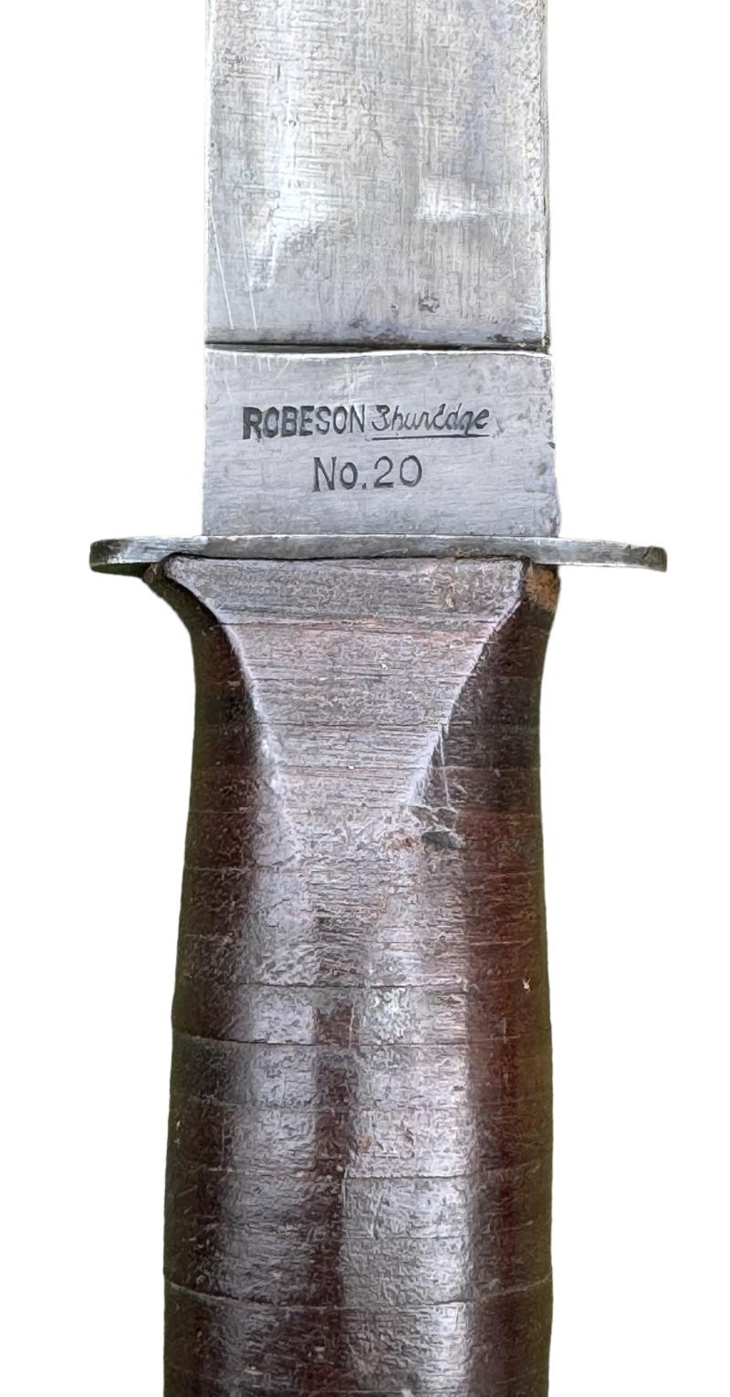 Nice used US WW2 c.1942 “Robeson, Shuredge 20 Rochester NY” USN (US Navy) fighting knife.
