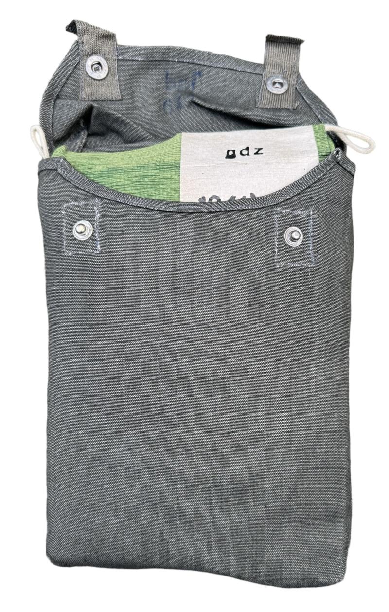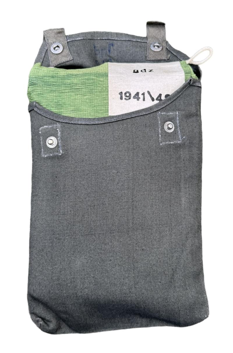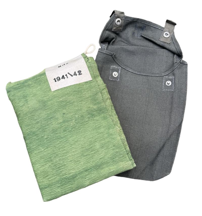 Wehrmacht anti Gascape in cloth Pouch Very nice Wehrmacht anti gascape in cloth gascape pouch. Cape marked “GDZ” and dated “1941/42”. Anti gascape and pouch are in very good condition.