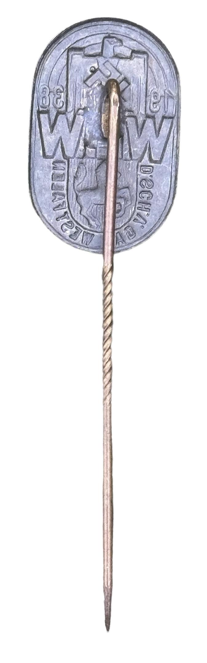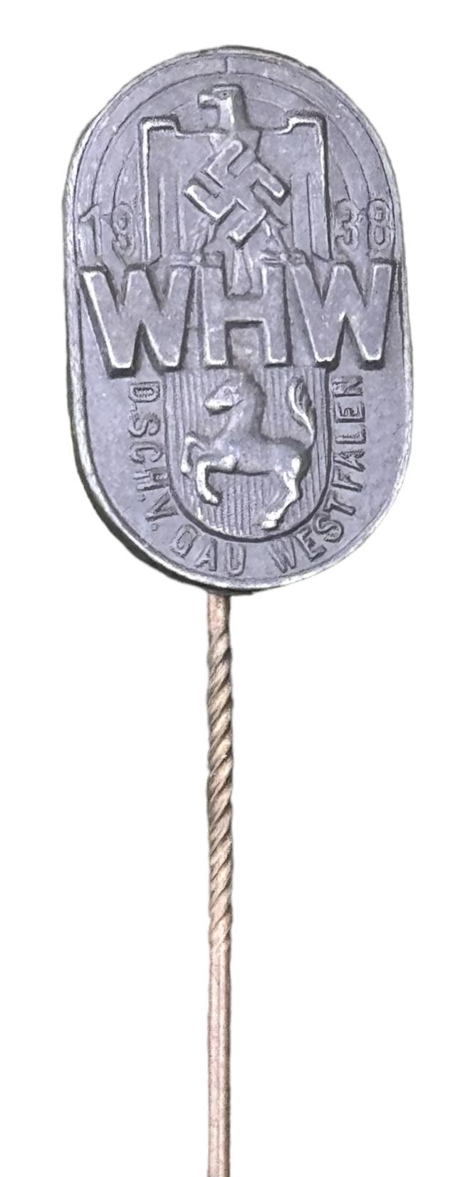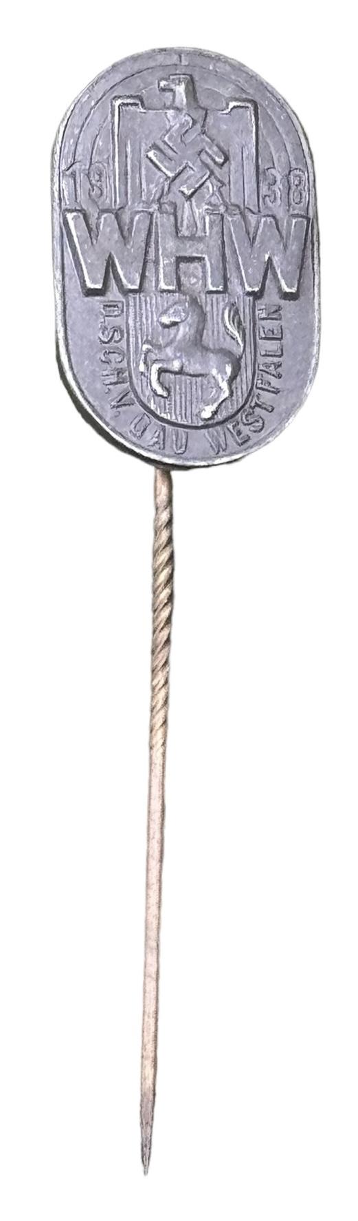 Winter Hilfs Werk stickpin (Gau Westfalen) WHW “Winter Hilfs Werk” stickpin. “D.S.C.H.V. Gau Westfalen” dated “1938” Nice stickpin in very good condition. Great for a WHW stickpin collection!
