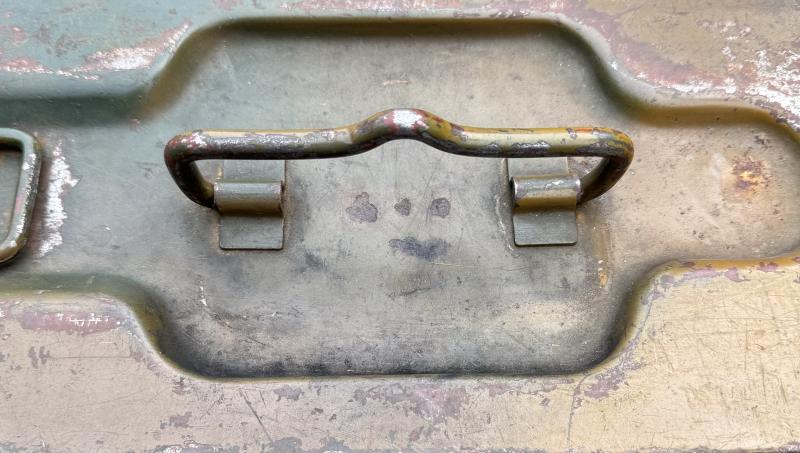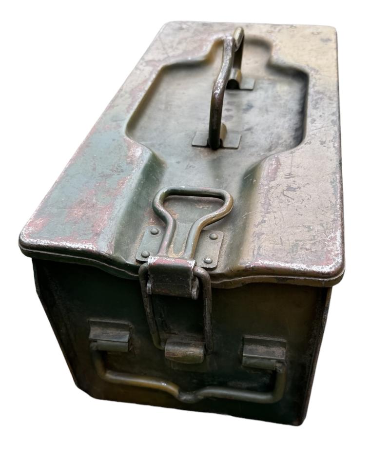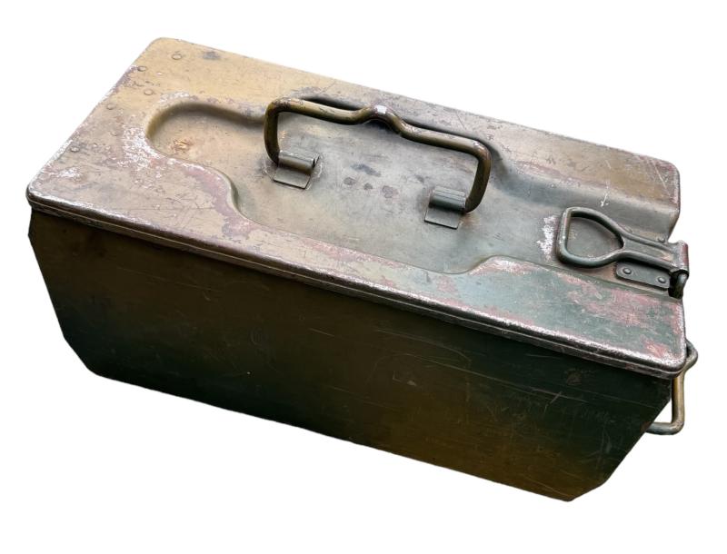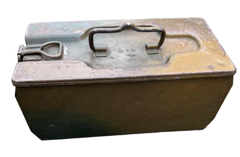 Very nice used metal (steel) Reichswehr/Wehrmacht camo ammunition case. “Waffen Ambt” marked.