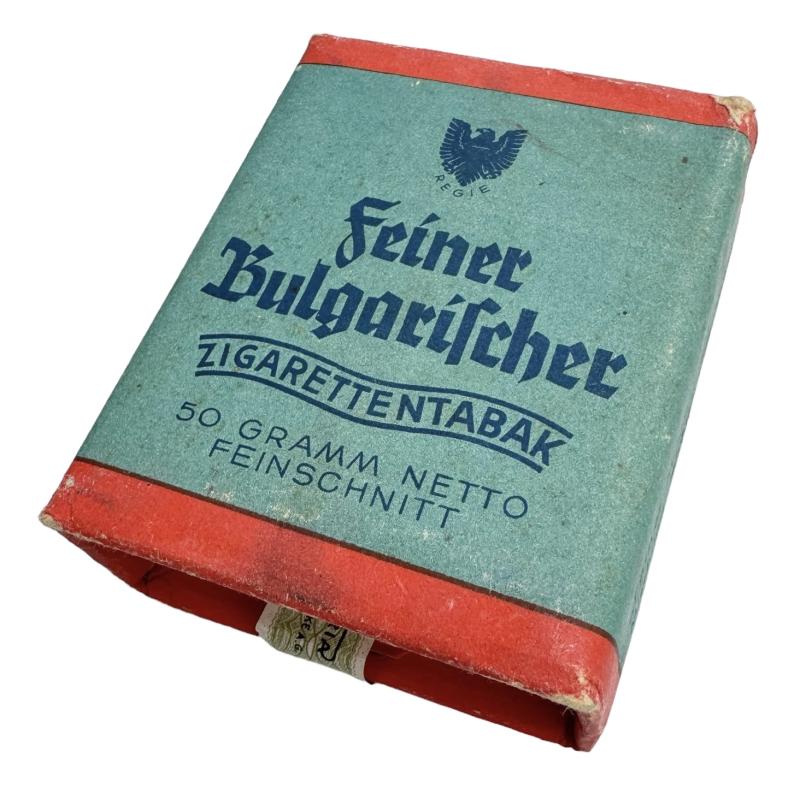 Wehrmacht era Cigarette Tabaco Very nice package Wehrmacht cigarette tabaco with content. “Feiner Bulgarischer” With “Third Reich” seal with eagle and swastika. Great for display! In very good condition.