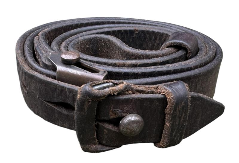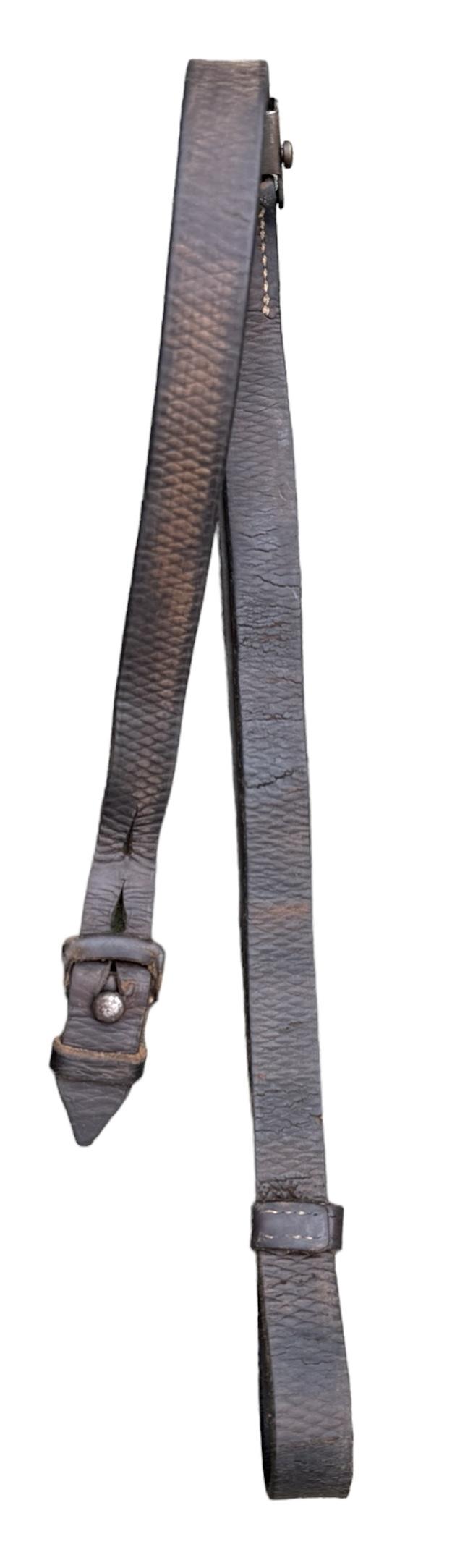 K98 G43 STG43/44 Carrying Sling Very nice smooth leather K98 K carrying sling Maker marked and dated “1936” Perfect to complete a nice K98/G43 or STG43/44 In used but very good condition.