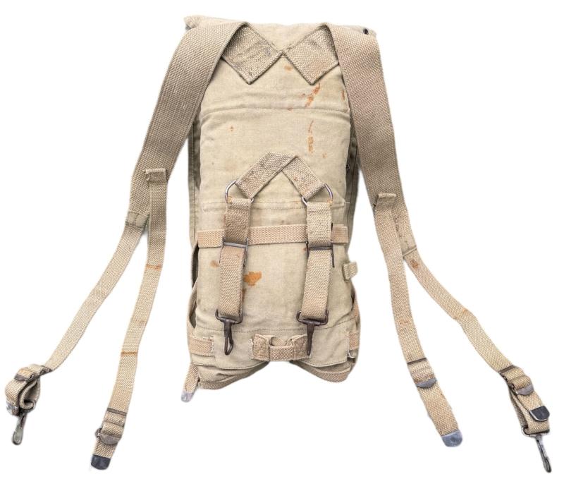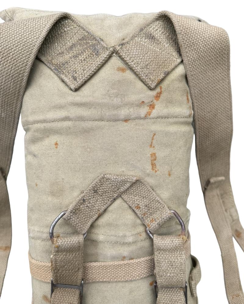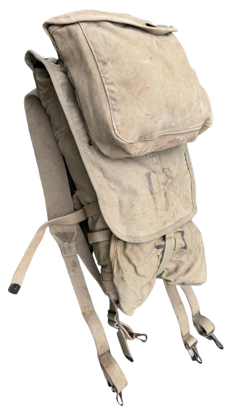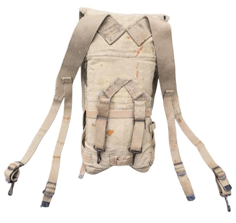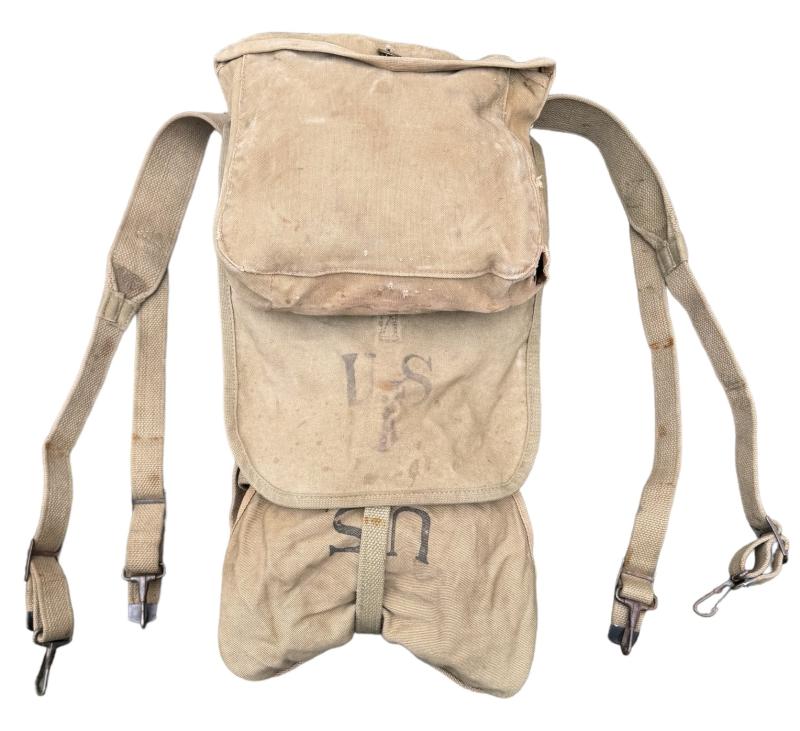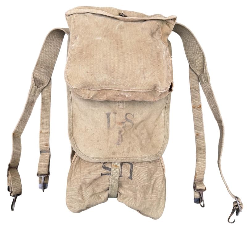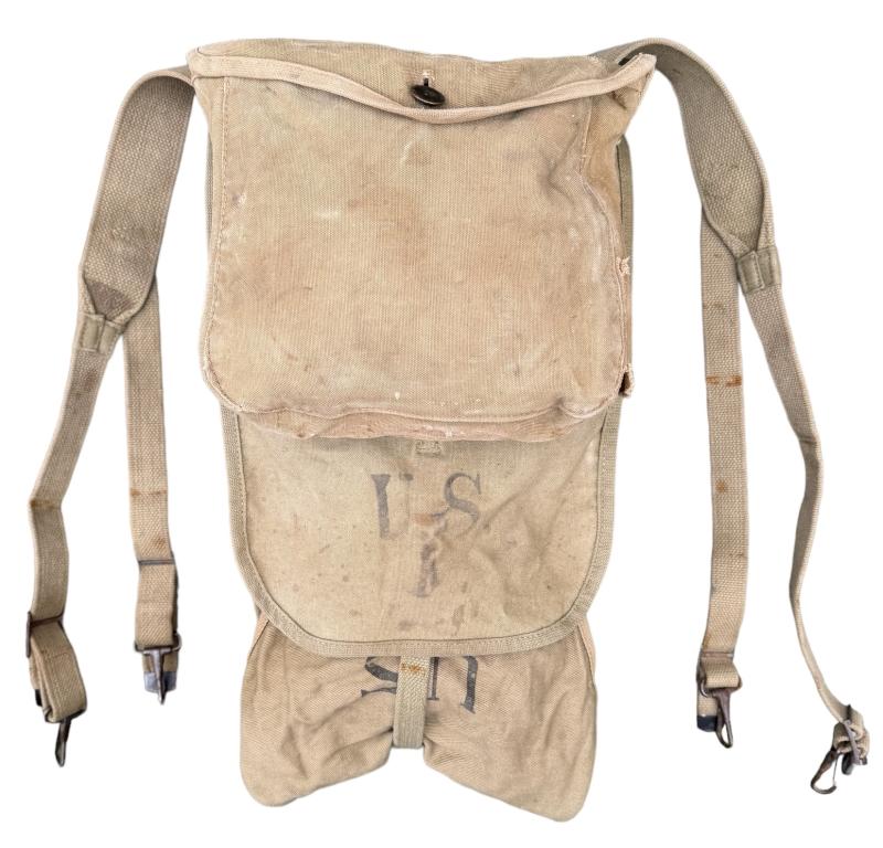 US WW2 M36 Backpack Very nice used US WW2 M36 backpack (so-called Haversack) complete with all straps. Maker marked and dated “1942” With its original mestin and cutterly pouch. And tail peace! In very good condition.