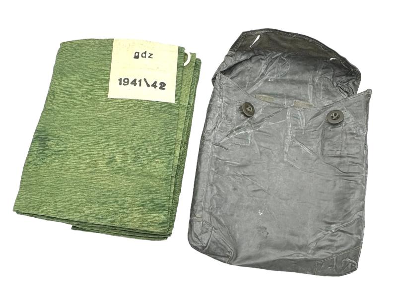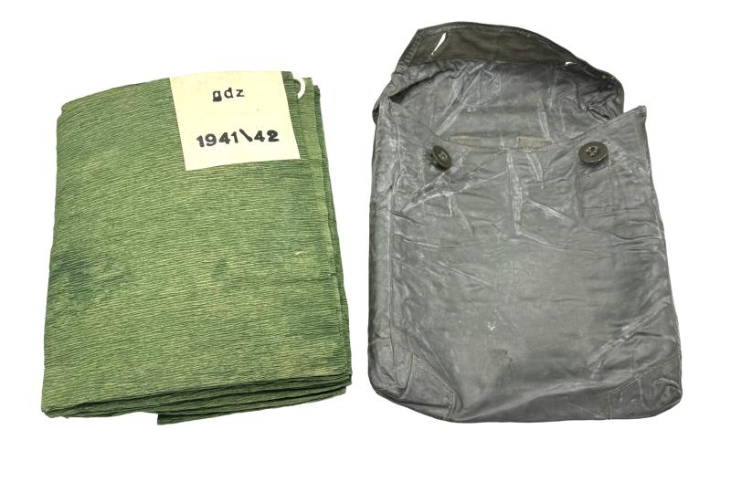 Wehrmacht anti Gascape in rubberized Pouch Very nice Wehrmacht anti gascape in rubberized gascape pouch. Cape marked “GDZ” and dated “1941/42”. Anti gascape and pouch are in very good condition.