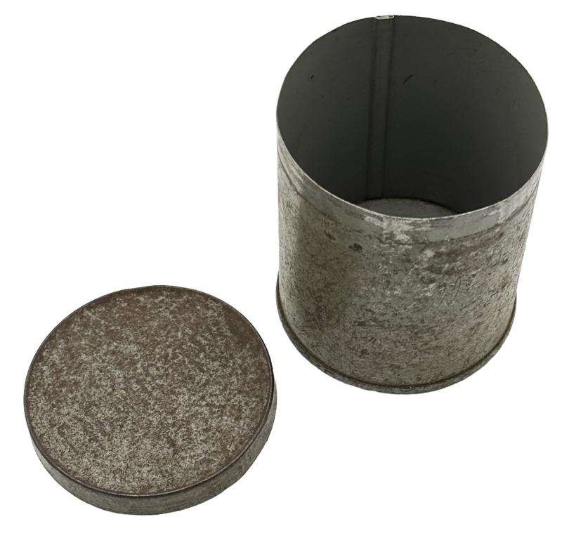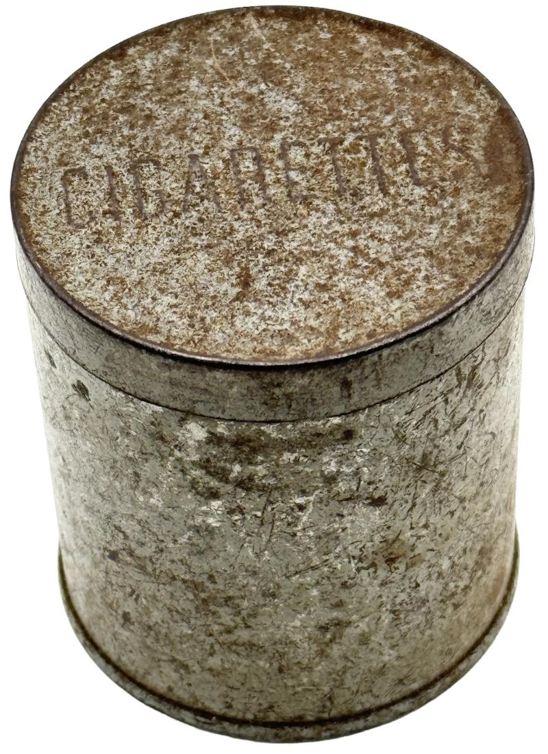 British WW2 metal Cigarette ration Can Nice metal British WW2 cigarette ration can. Without content. Can in its original grey paint. In used but good condition.