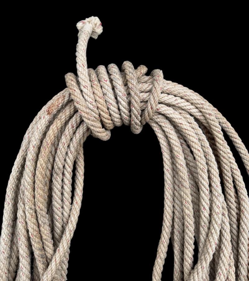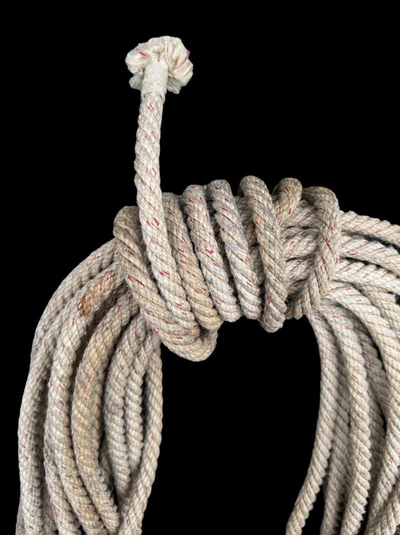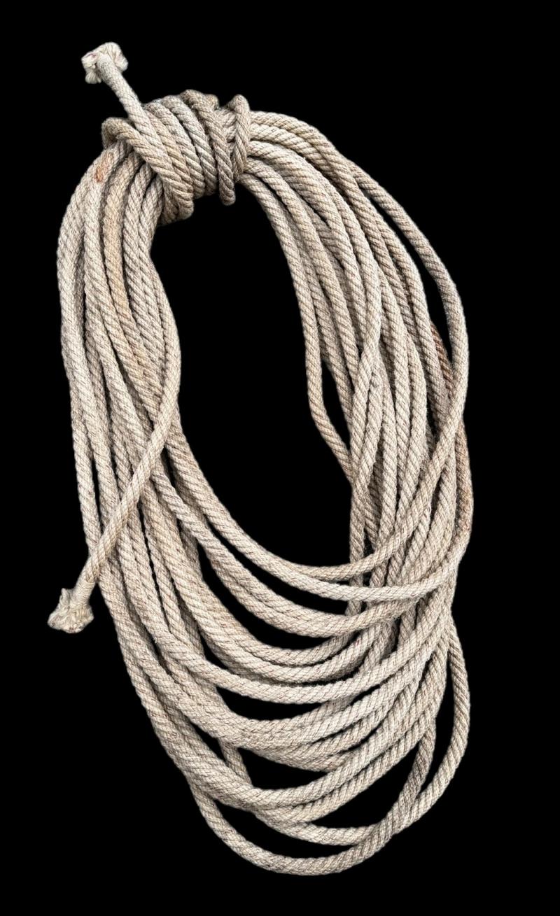 Nice original Wehrmacht/WaffenSS “Gebirgsjäger” climbing rope. The rope has a red tread woven in to the rope. That stands for a certain size,