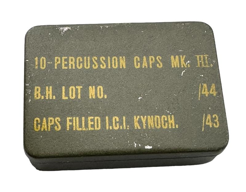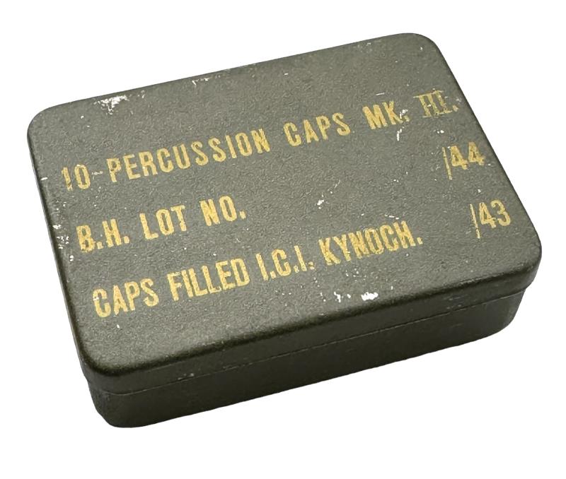 British WW2 metal Percussion Caps Can Nice empty metal can for percussion caps. These caps where used for detonation of explosives by combat engineers. In very good condition.