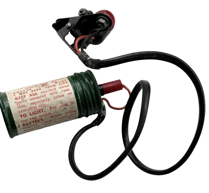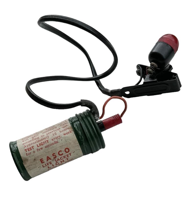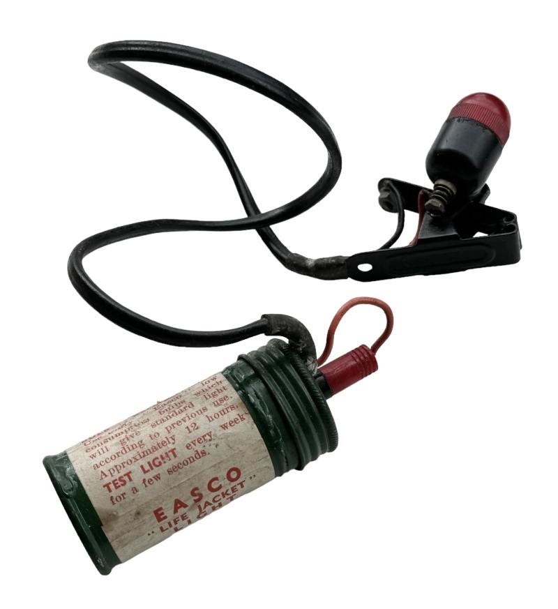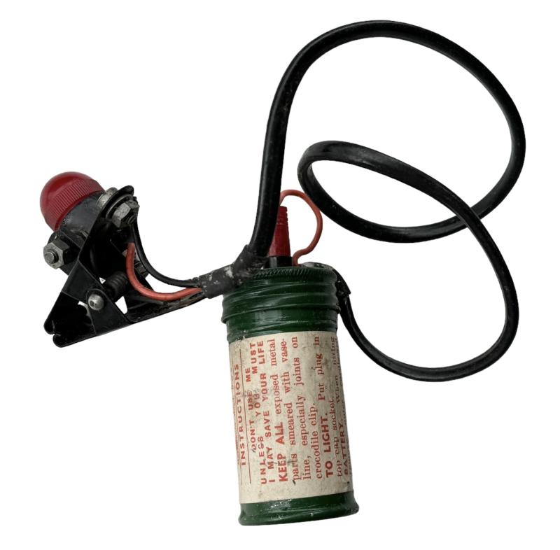 Life vest survival light. When shot down above water (channel) and survived bailout jump or crash landing, in the dark the light was used to be found in the dark by a rescue team. The battery holder comes with its original paper instructions label. Overal in very hood content (only needs a light bulb) nice for a British WW2 Pilot/aircrew mannequin!