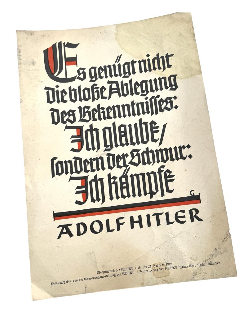 “Es Genügt nicht, Die blosse Ablegung, Des bekenntnisses: Ich glaube/sondern der Schwur: Ich Kǎmpfe, Adolf Hitler”