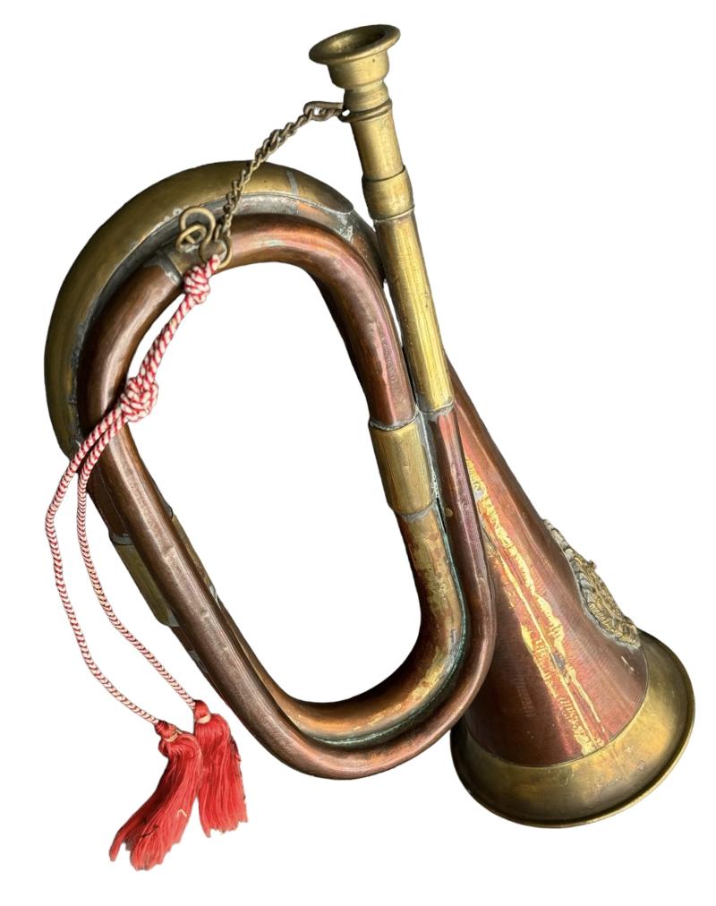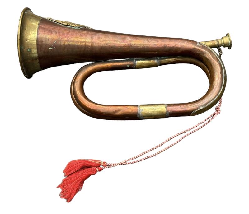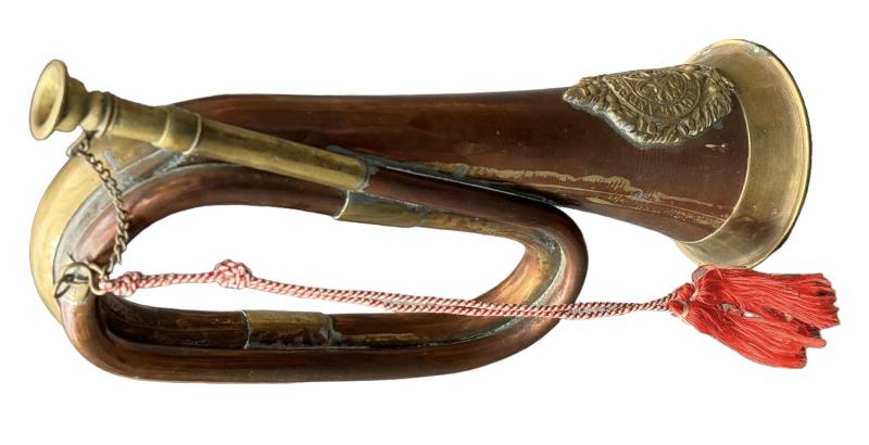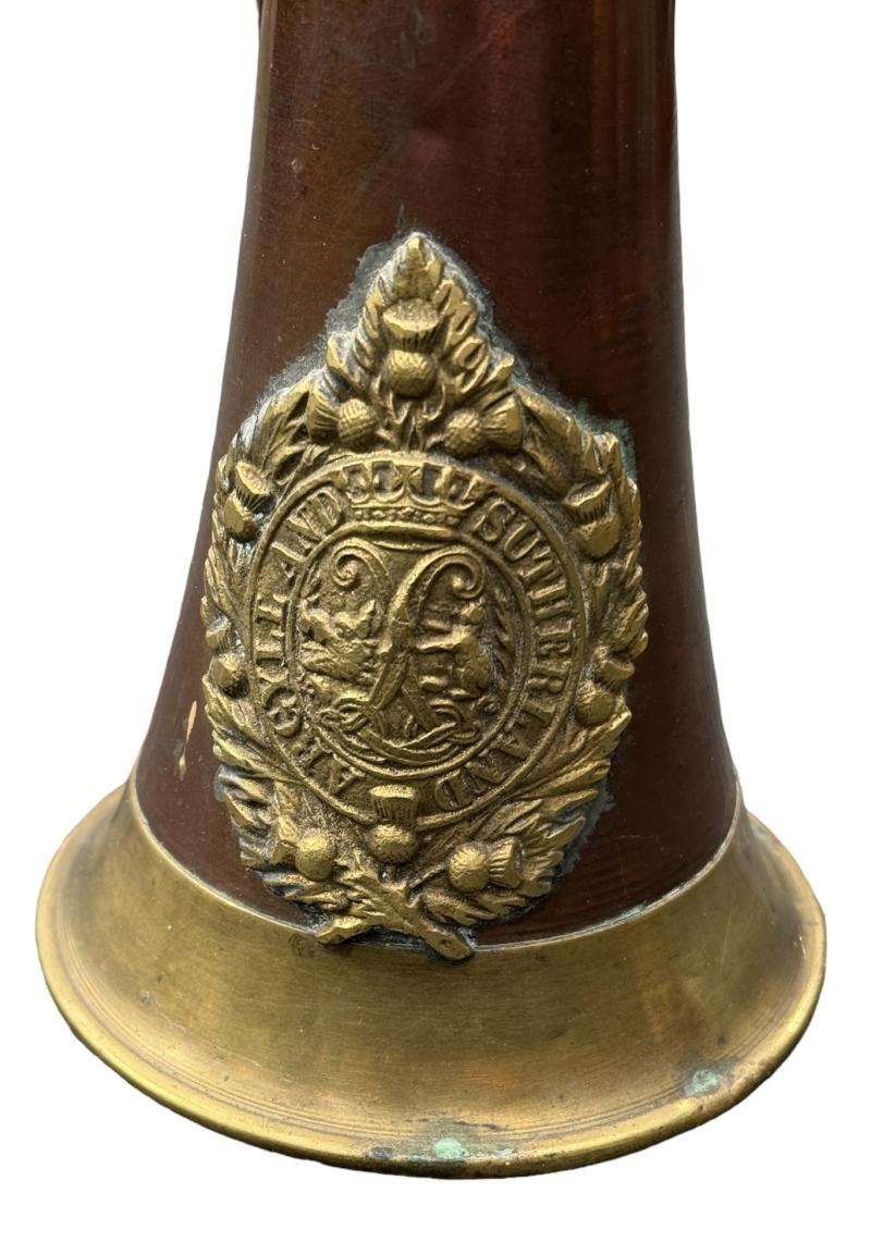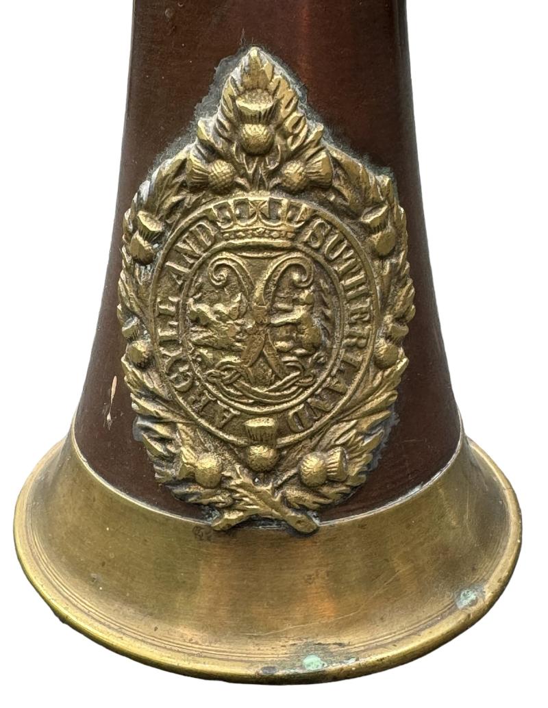 Nice decorative brass made trumpet/bugle with metal insignia attached of the “Argyle and Sutherland” Regiment.