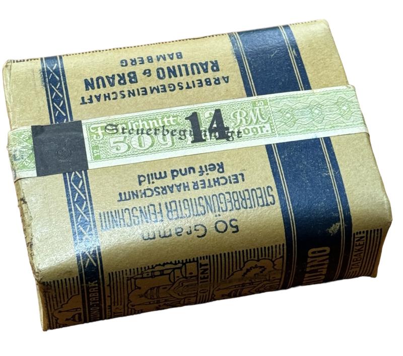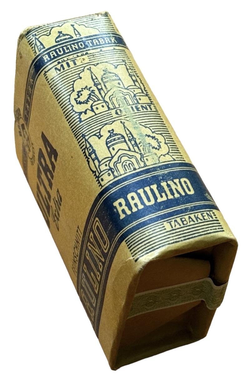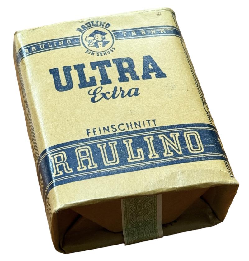 Wehrmacht era Cigarette Tabaco Very nice package Wehrmacht cigarette tabaco with content. “Raulino, Ultra Extra” With “Third Reich” seal with eagle and swastika. Great for display! In very good condition.