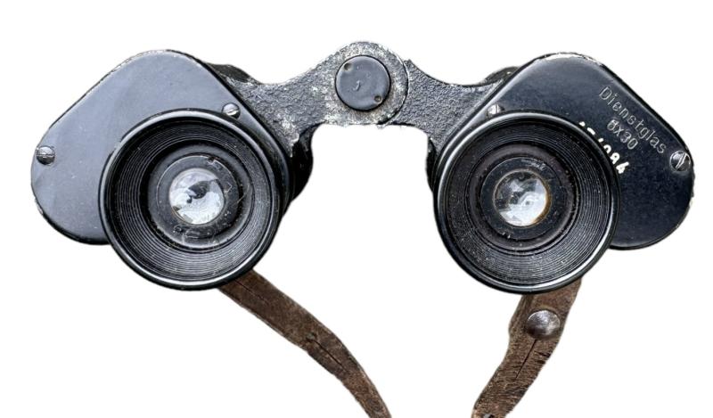 Wehrmacht 6x30 Binoculairs with strap Very nice Wehrmacht so-called “Dienstglas” Binoculars “6x30” with its original leather strap. Optics in very good condition. Great on a mannequin!