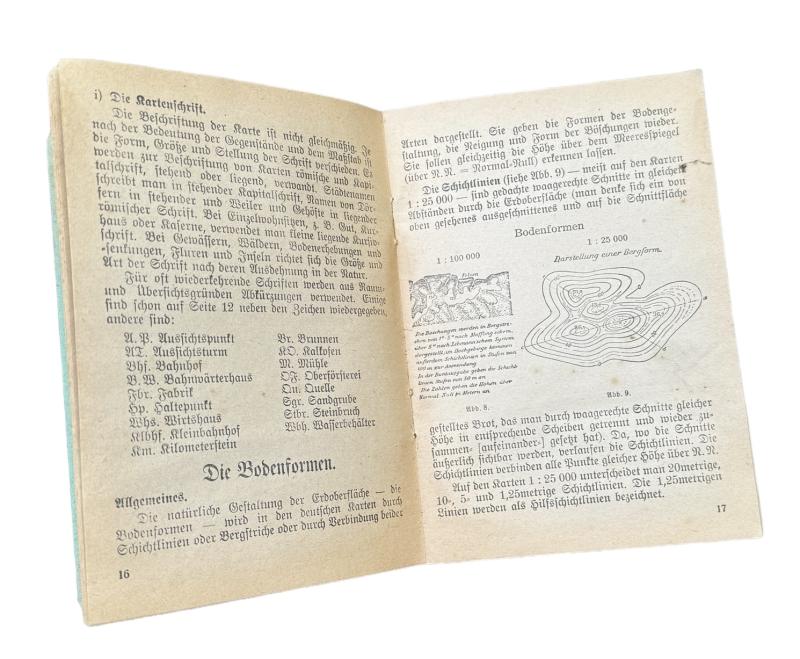 Karte und Geländekunde Booklet Named SS Unterscharführer note booklet. To learn to work with maps and the use of the territories In salty condition but still nice for display!