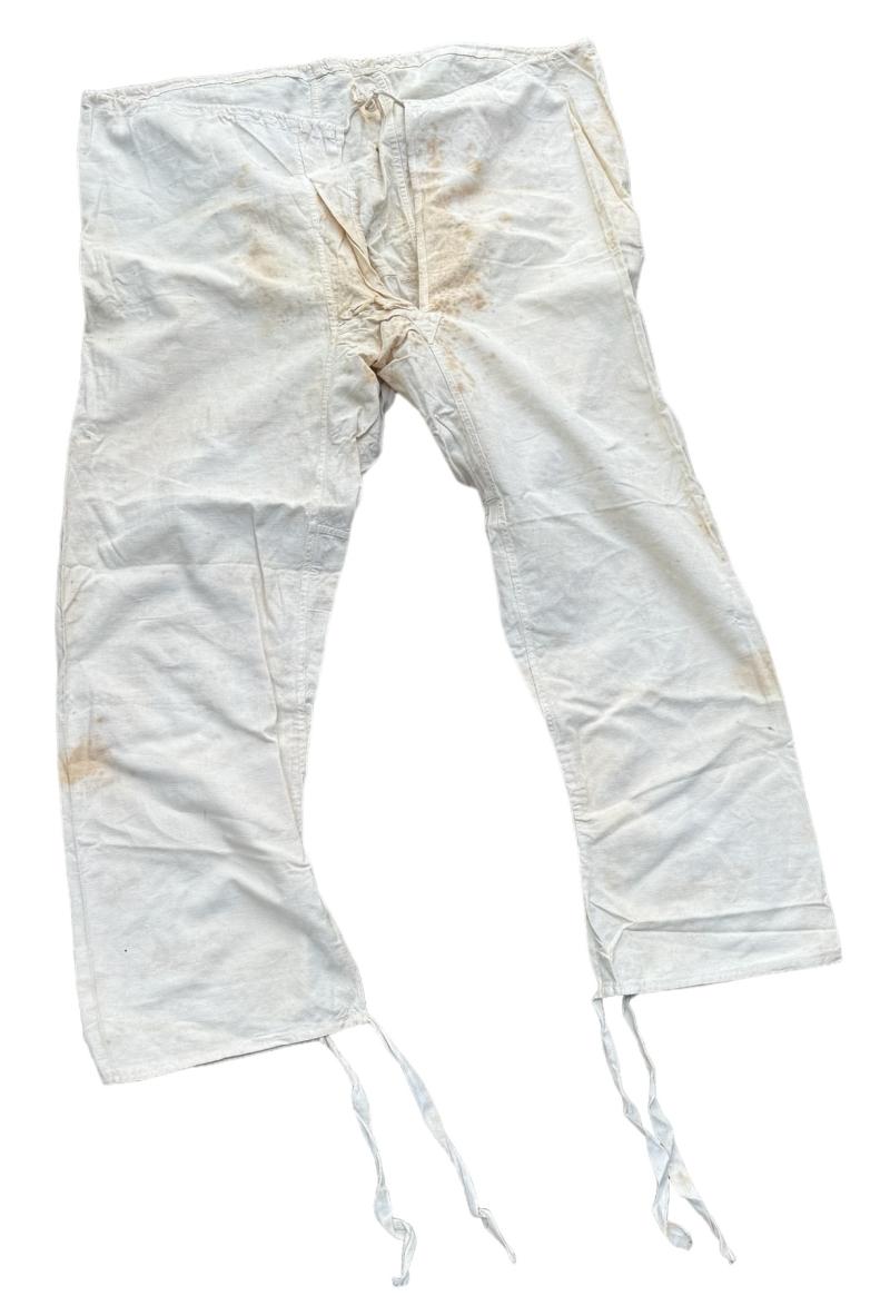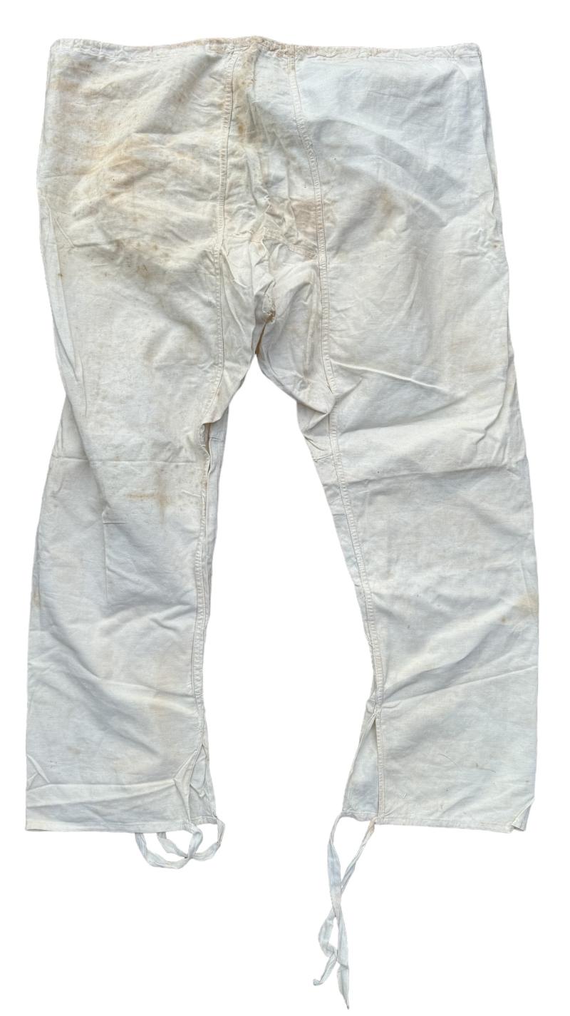 Wehrmacht Winter Camo Trousers Used thin cotton Wehrmacht winter camo trousers. To use on top of the non reversible winter trousers of regular wool combat trousers. In used but good condition.