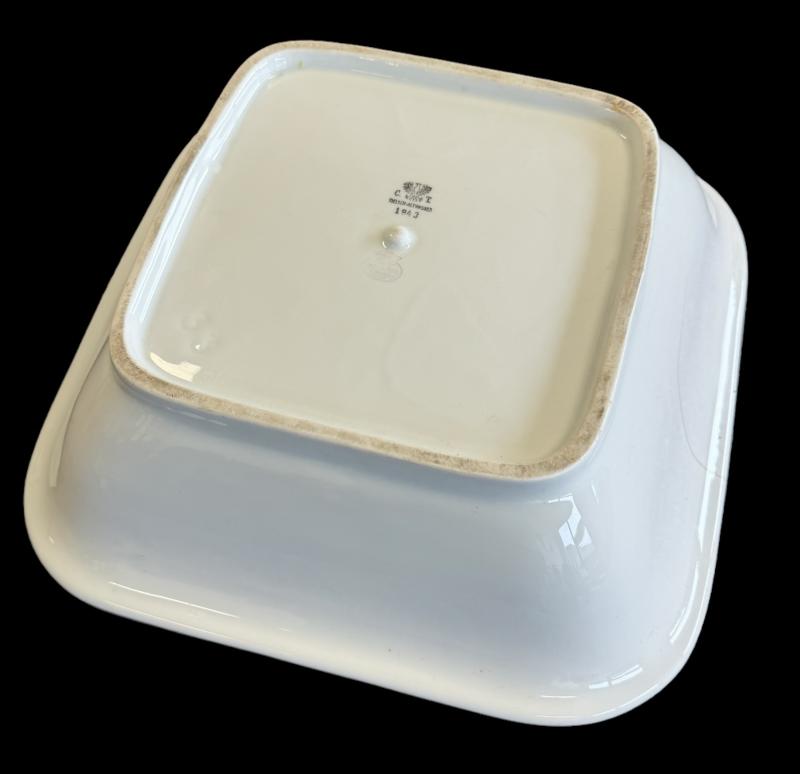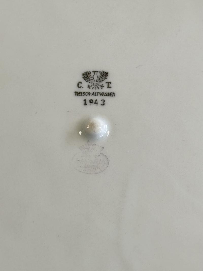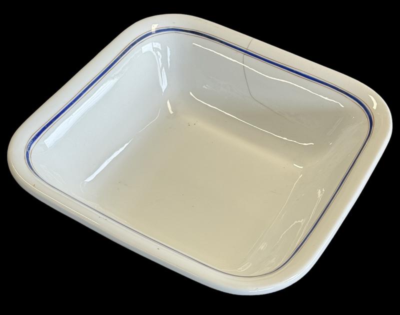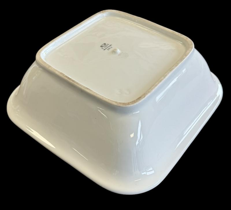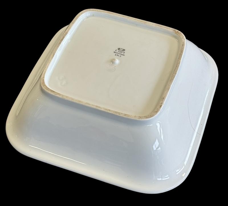 Wehrmacht porcelain Messhall Salad Bowl Nice used Wehrmacht messhall salad bowl. For NCO’s (blue/golden) lines. Made by “C.T. Thelsh-Altewasser” and dated “1943” In used but in good condition.