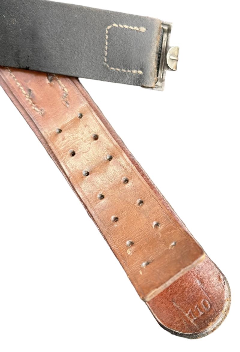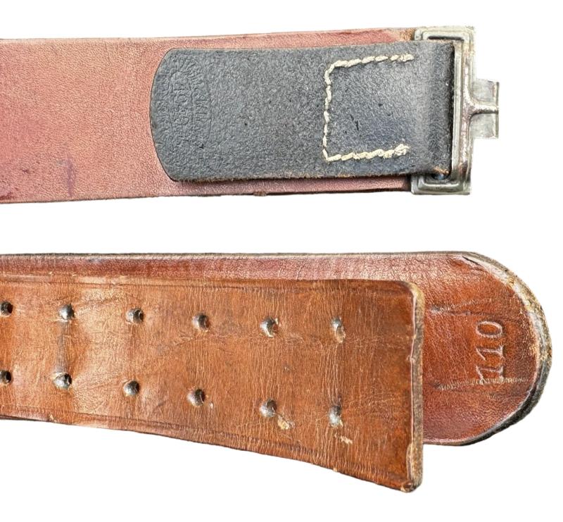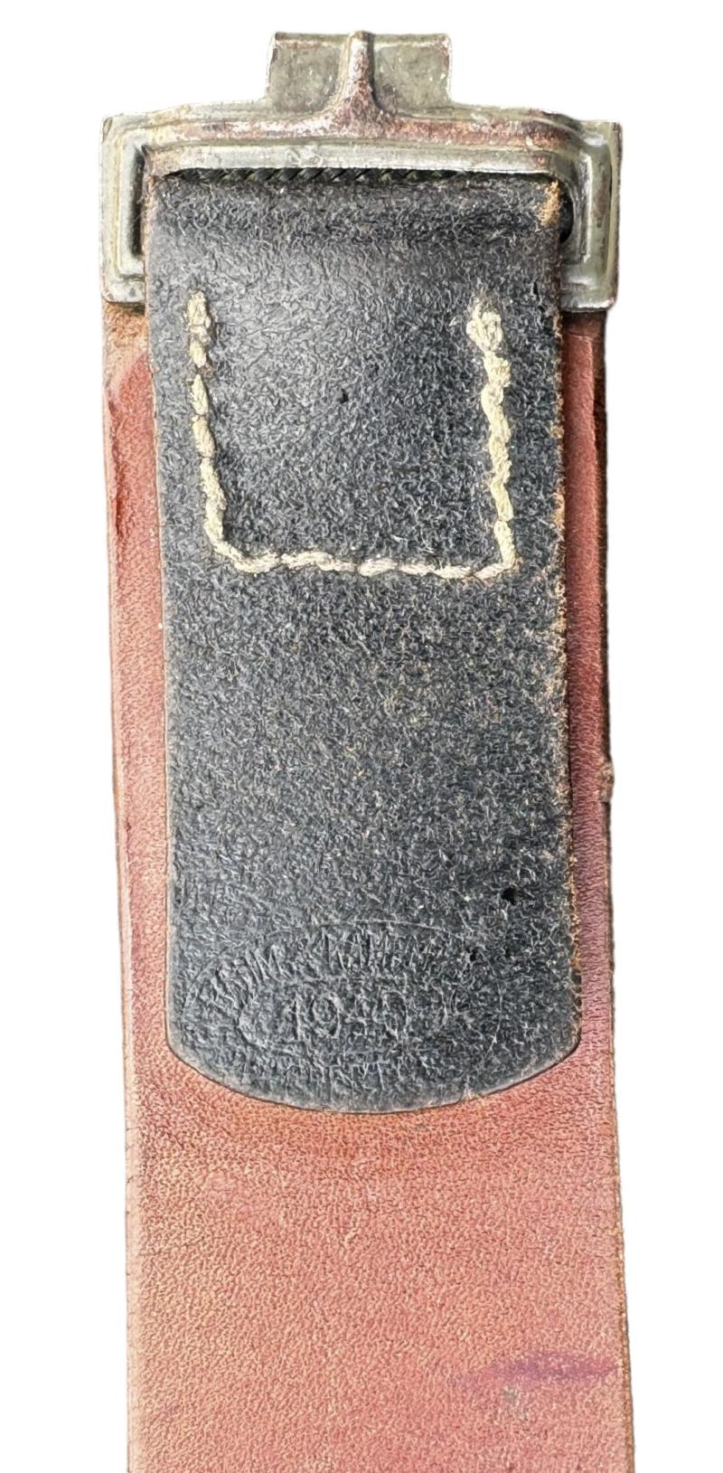 Wehrmacht Combat Belt Fantastic leather Wehrmacht combat belt with steel buckle catch in size “110”cm maker marked and dated “1940”. Leather in very good and smooth condition. Hard to upgrade!