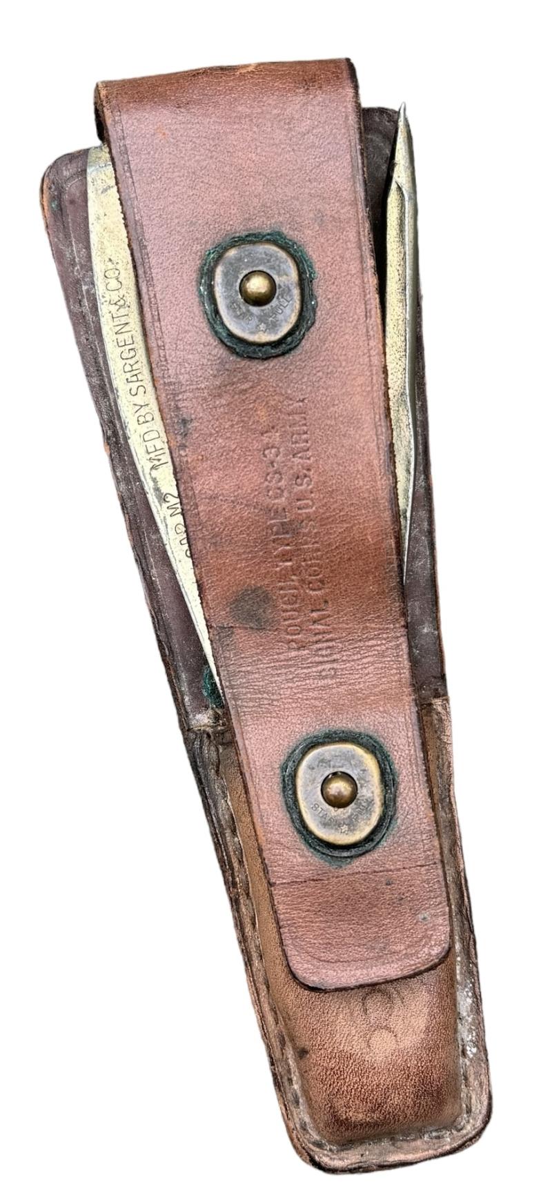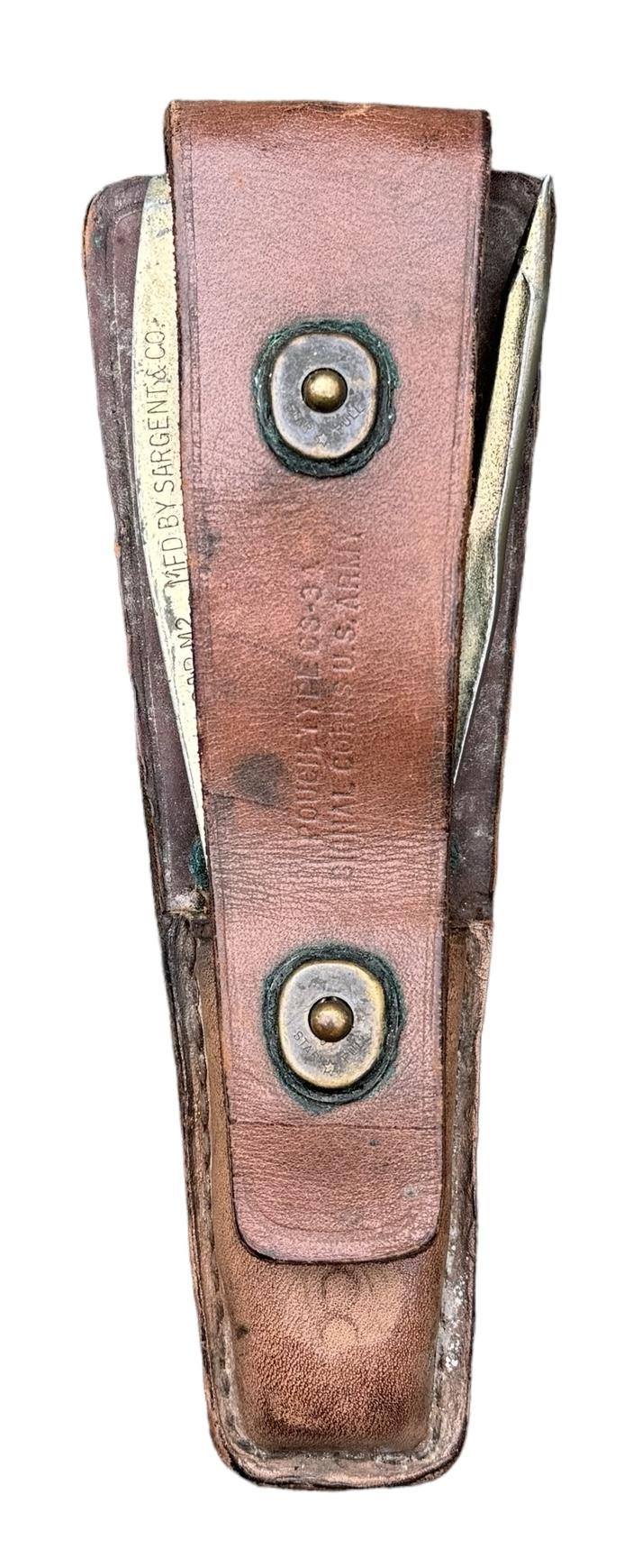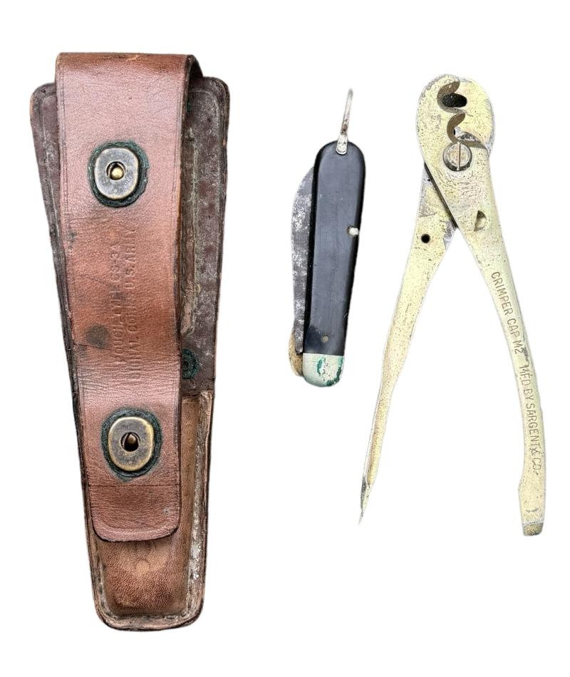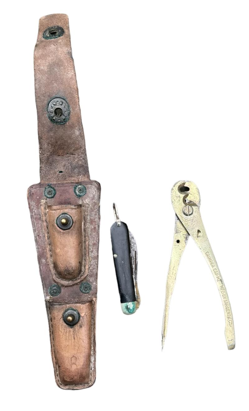 US WW2 Signal Corps Cutter and Knife in Pouch US WW2 CS34 signal corps cutters/knife and pouch. Cutters marked “Crimper Cap M2, Mfd. by Sargent& Co.” all in used but good condition!