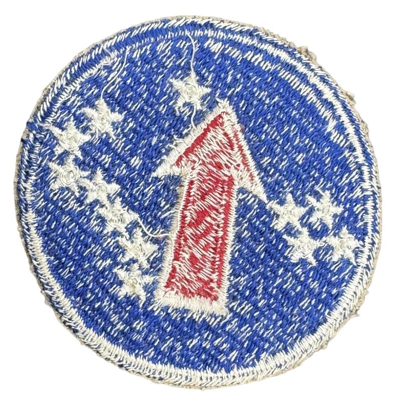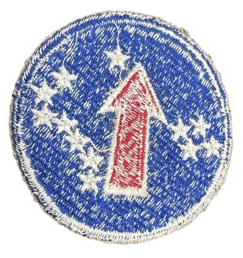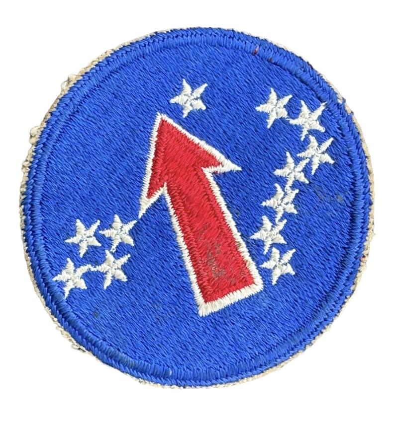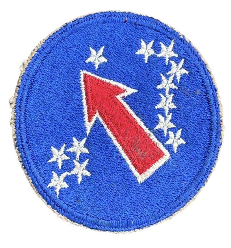 The patch contains a red arrow and white stars on a blue field. The red arrow of war denotes the valor and self-sufficiency of the forces of the command.