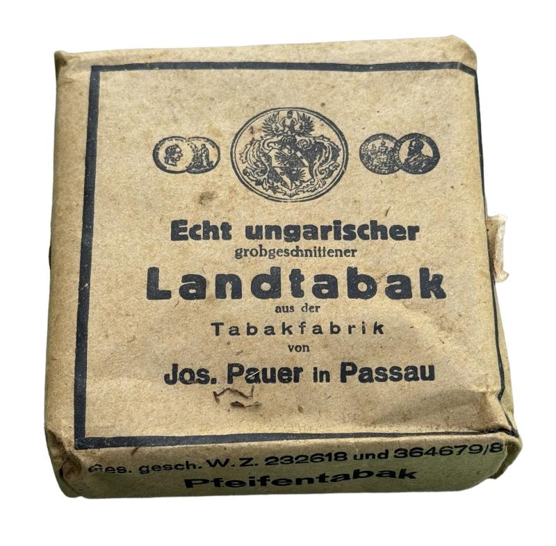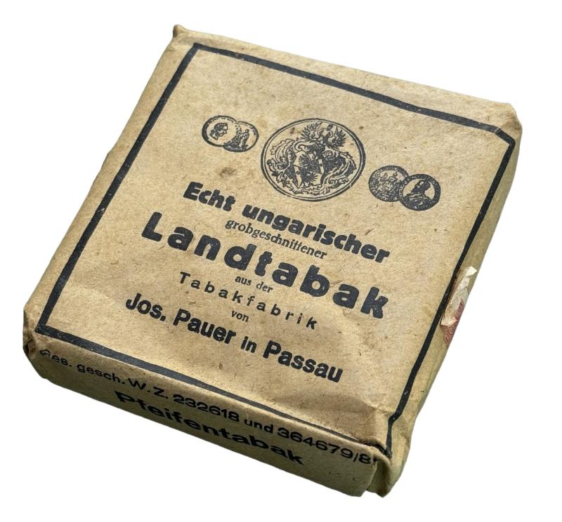 “Ungarischer landtabak” nice original packaging with content. And with original paper seal with Third Reich eagle marking. In very good condition.
