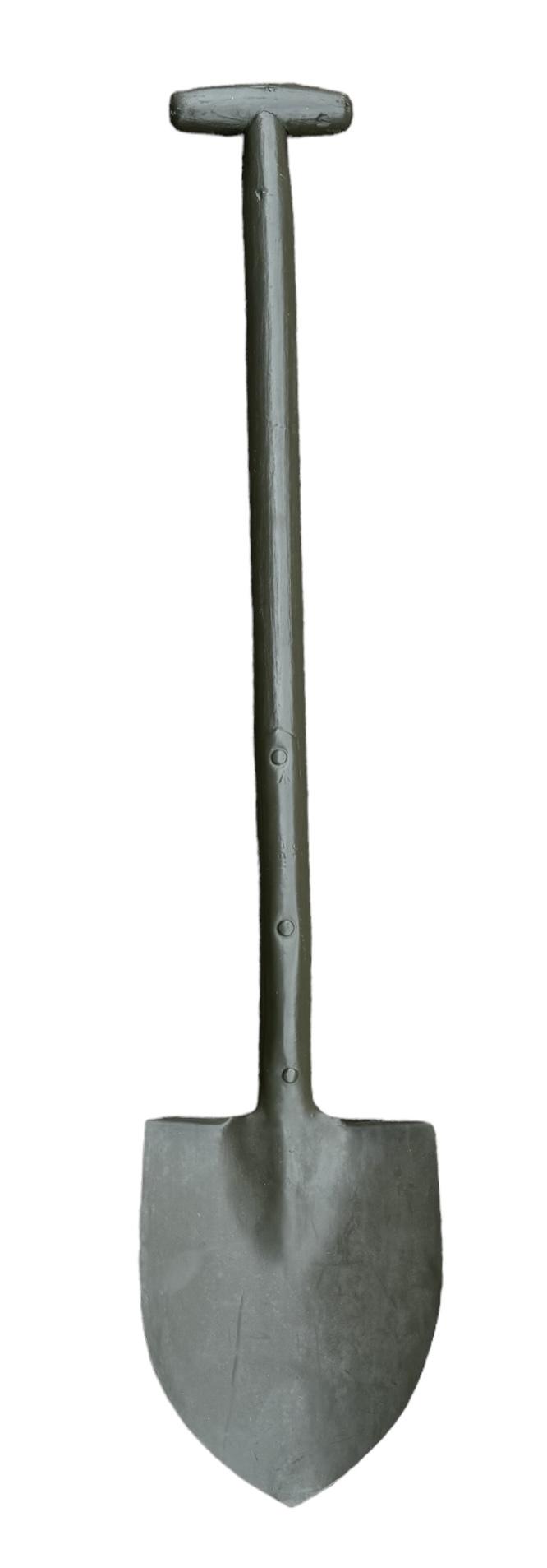 British WW2 Shovel Very nice big British shovel, to dig fox wholes Maker marked and dated “1943” British Infantry soldiers did carry them behind there small pack. In very good condition.