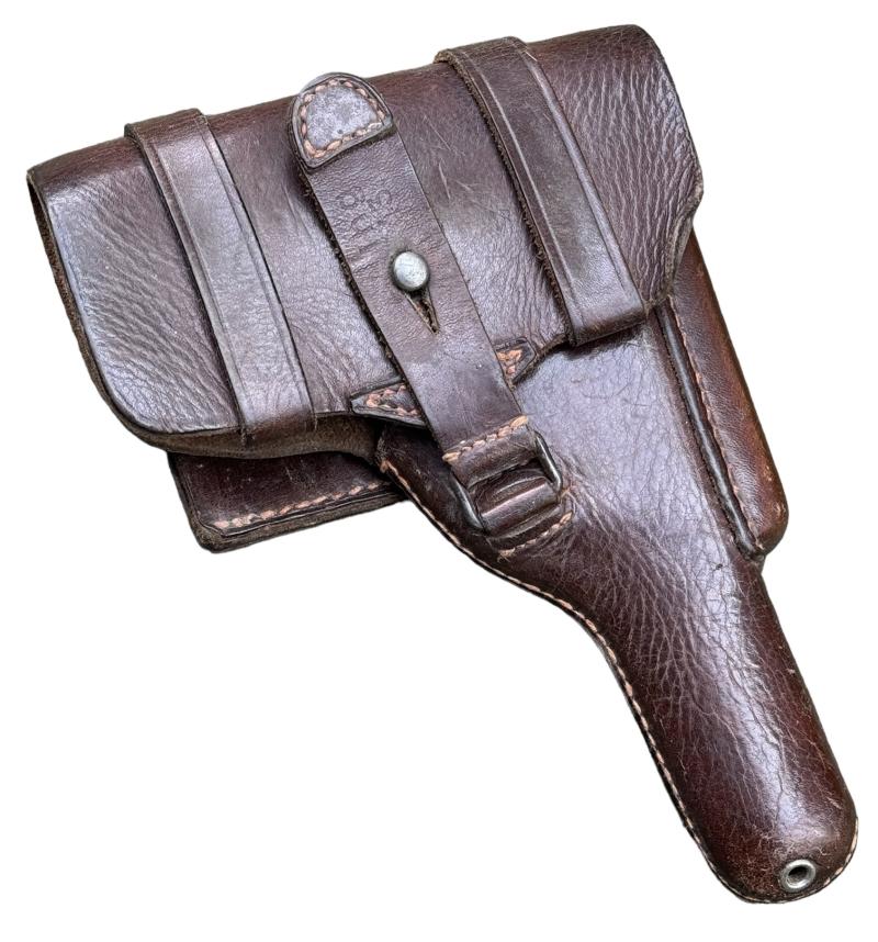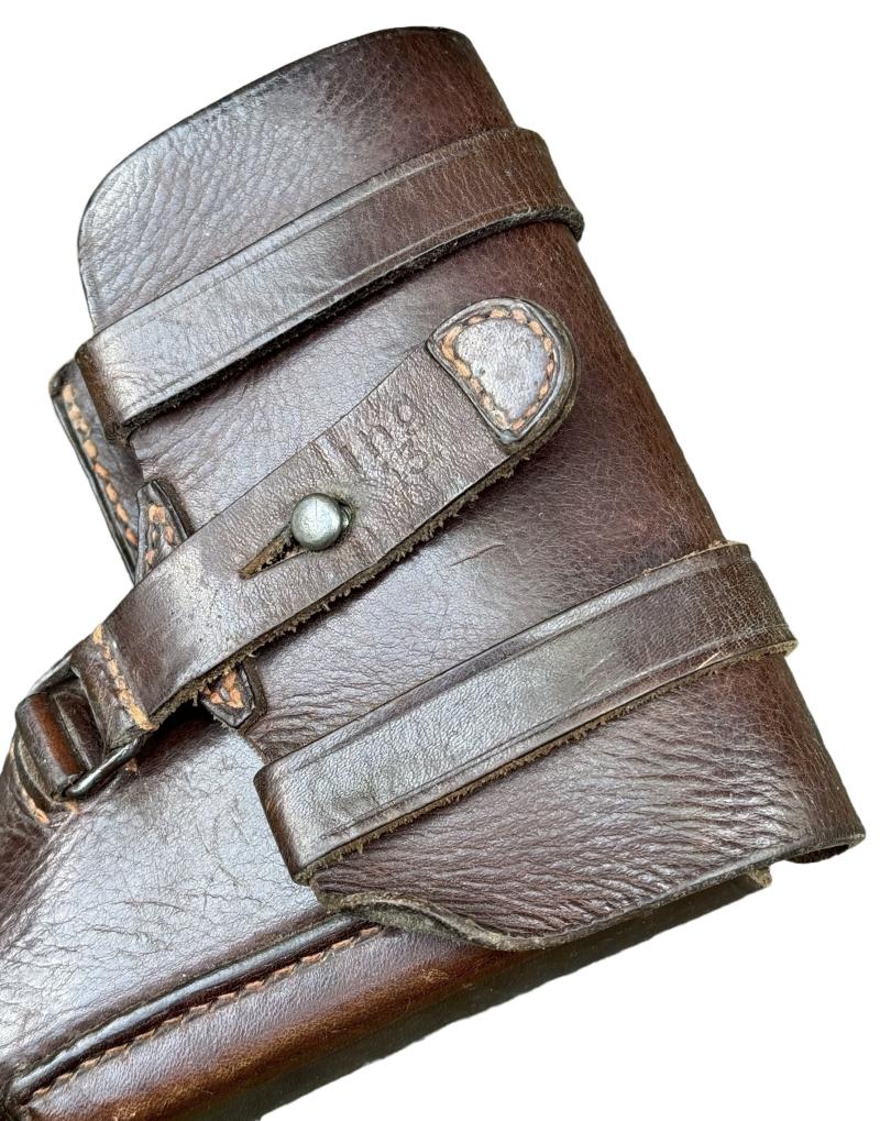 Fantastic dark brown Wehrmacht/Luftwaffe FN1922 pistol holster. Maker code marked “IHG” and dated “1943” mostly used by Luftwaffe Officers and Air crews. As personal side arm. Overal in very good condition.