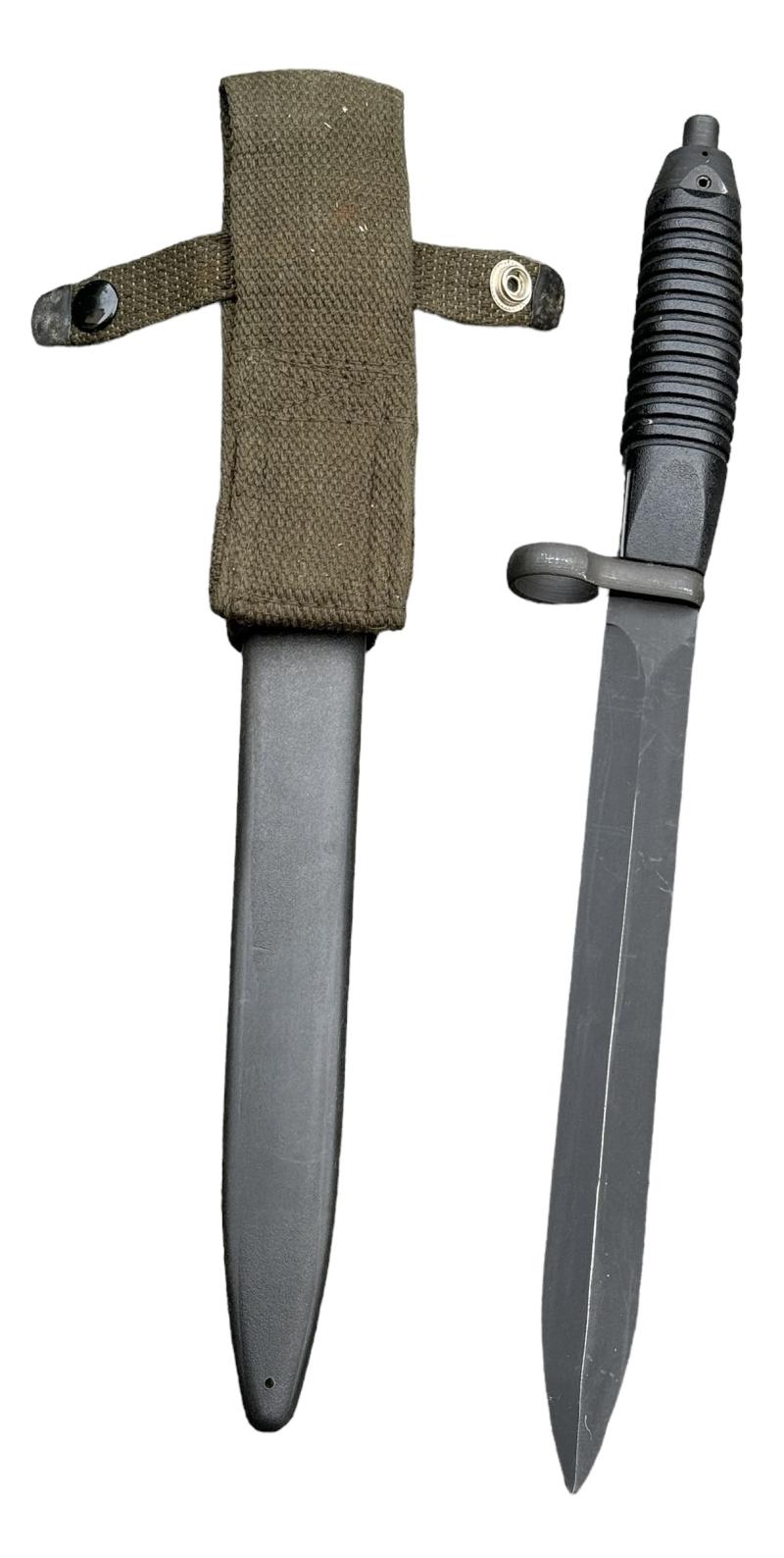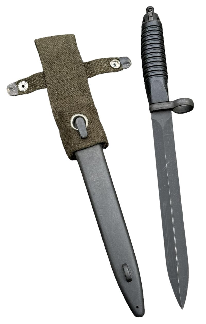 Iran G3 Heckler & Koch Bayonet Very nice German export bayonet. For “Iran” for the Heckler & Koch G3 assault rifle. Complete with its original scabbard. In very good condition!