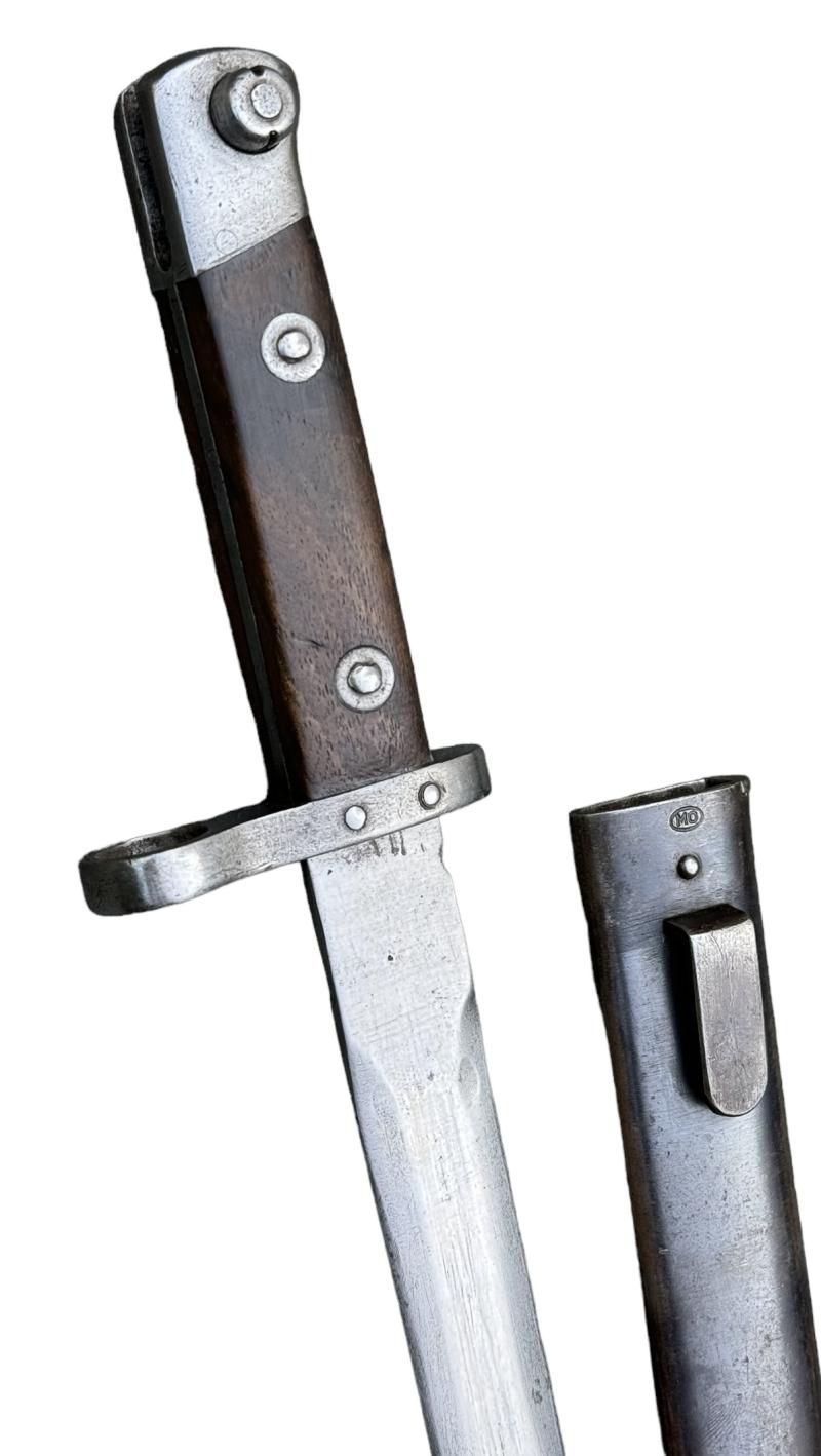 Austrian Model 1895 Bayonet Very nice used Austrian model 1895 Mannlicher bayonet (Mannlicher Cal. 8x 50 R” In irts original steel scabbard. Overal a nice bayonet in very good condition.