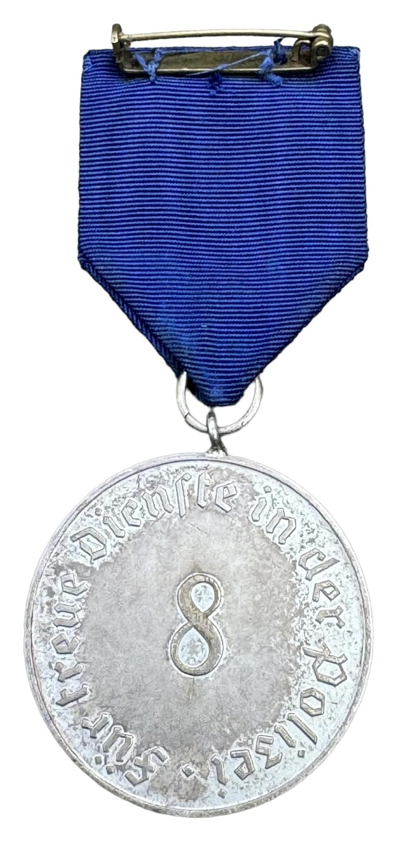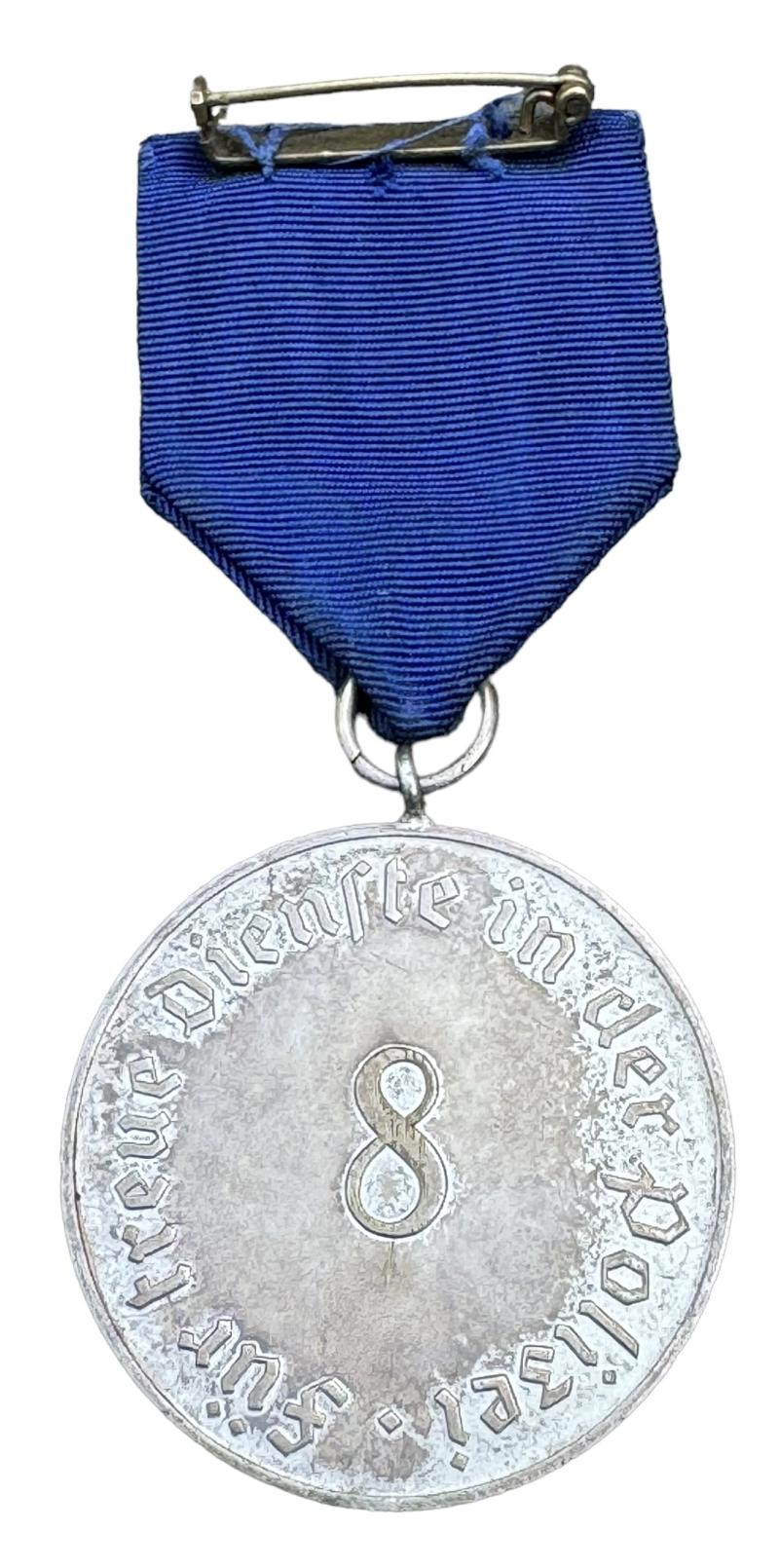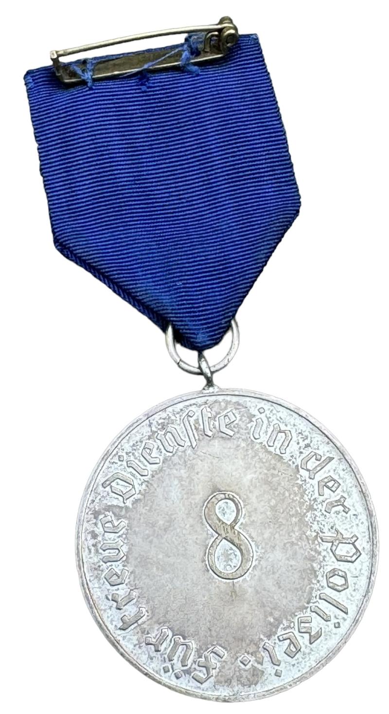 Polizei 8 Year Loyal Service Medal Very nice Third Reich “8” years loyal service medal in the “Polizei” with its original blue ribbon In very good condition.