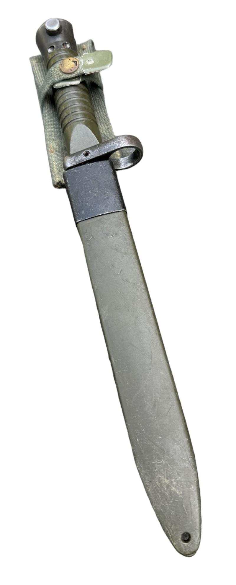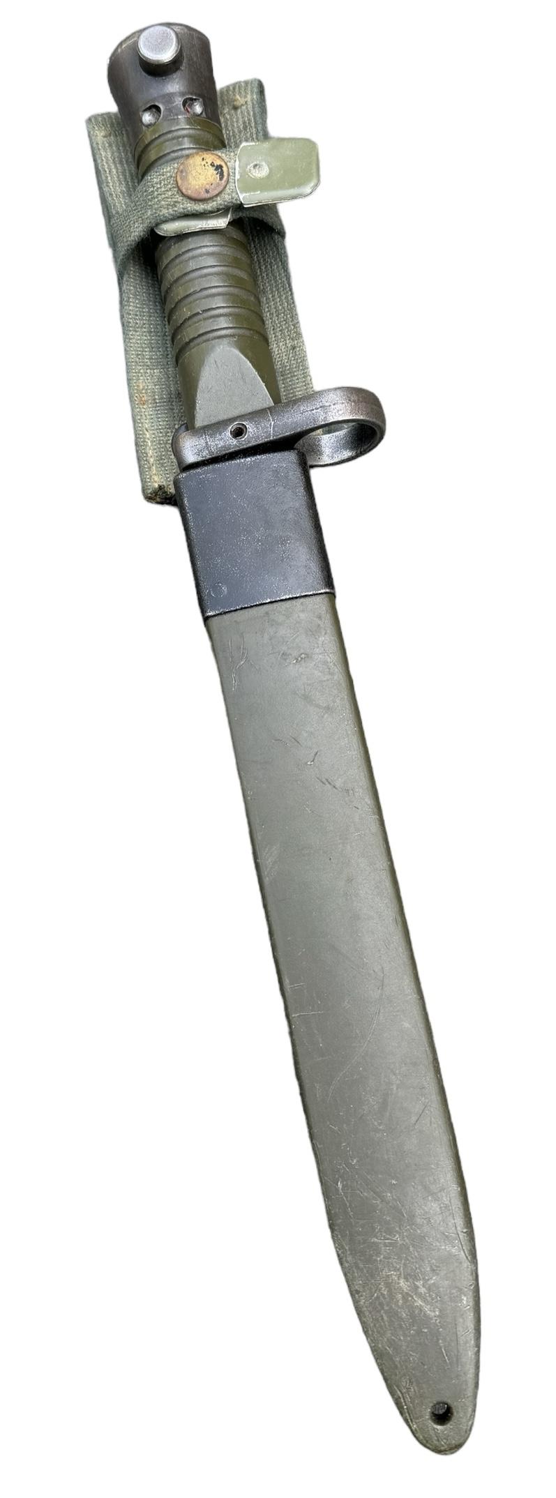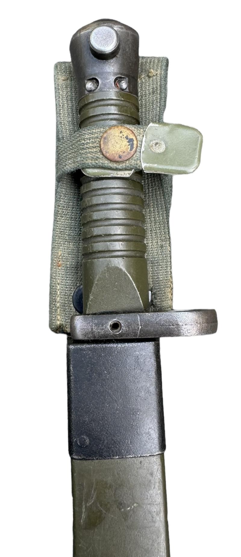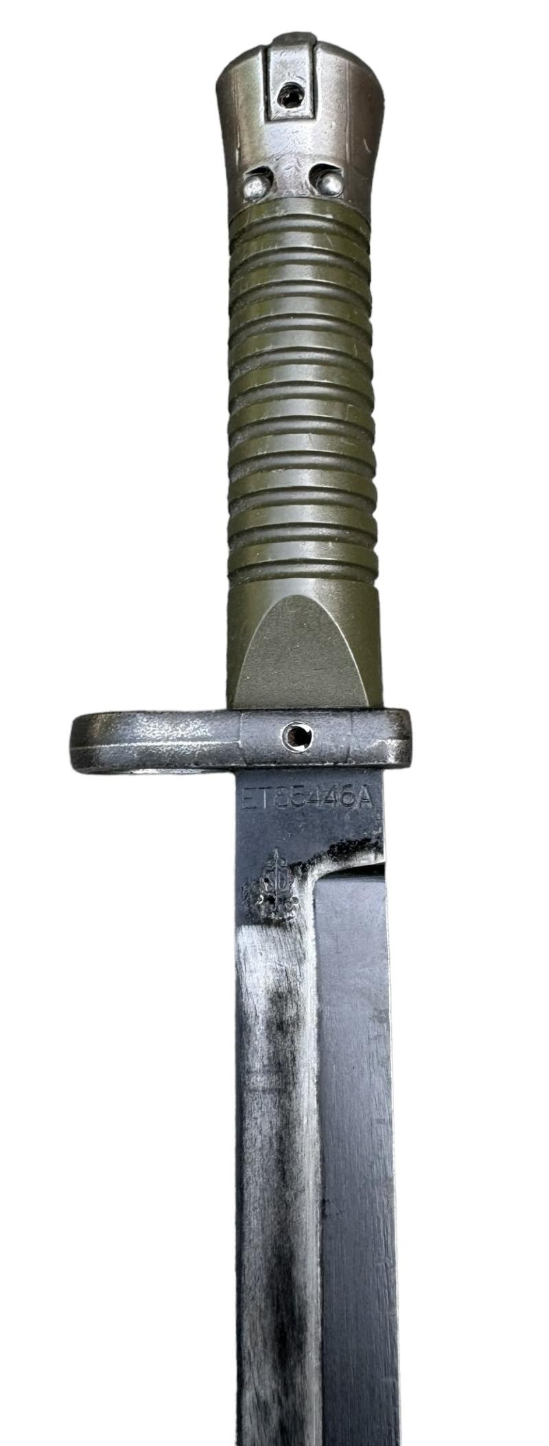 Spanish Navy Model Bayonet Used but nice Spanish “Navy” model bayonet. For the “Cetme L Rifle Cal. 5,56x45 (.223 Rem) Marked with the Spanish eagle. Made in “Toledo” Spain. With its original plastic scabberd.