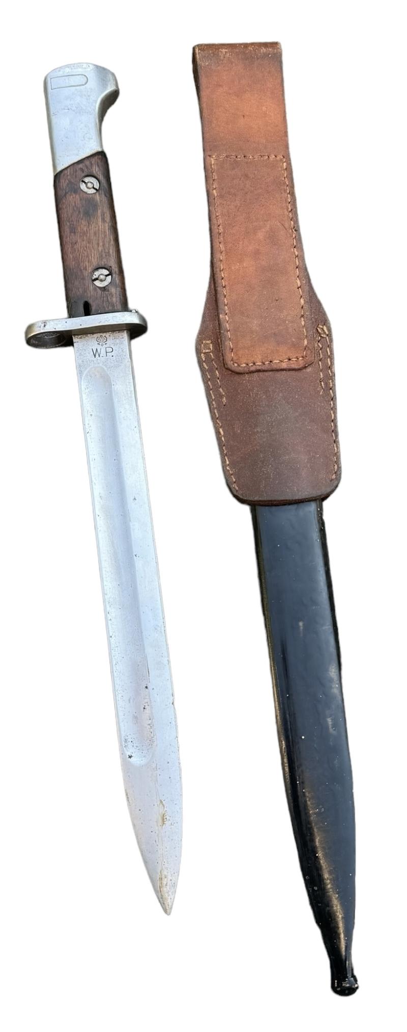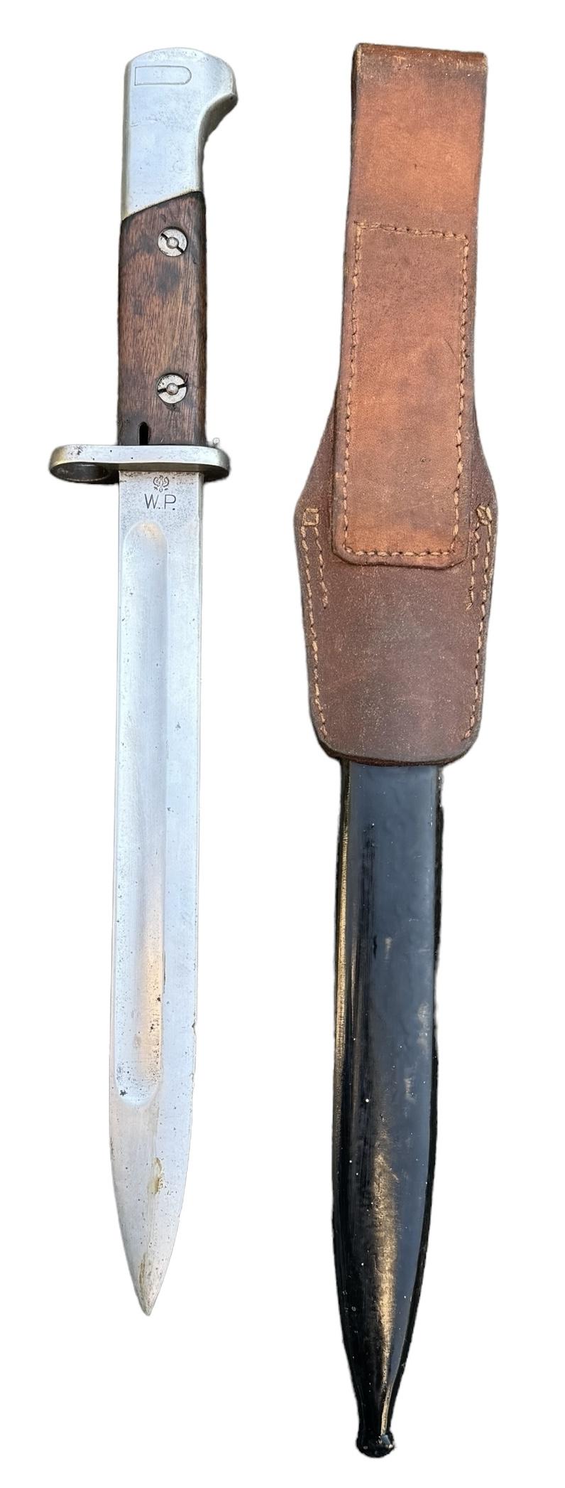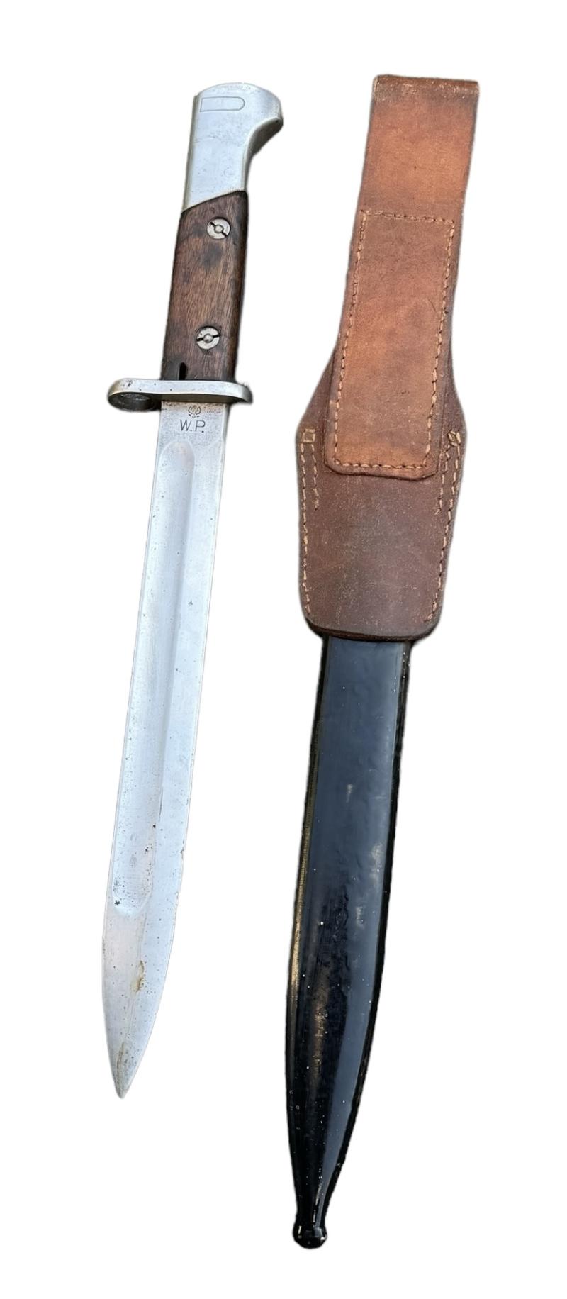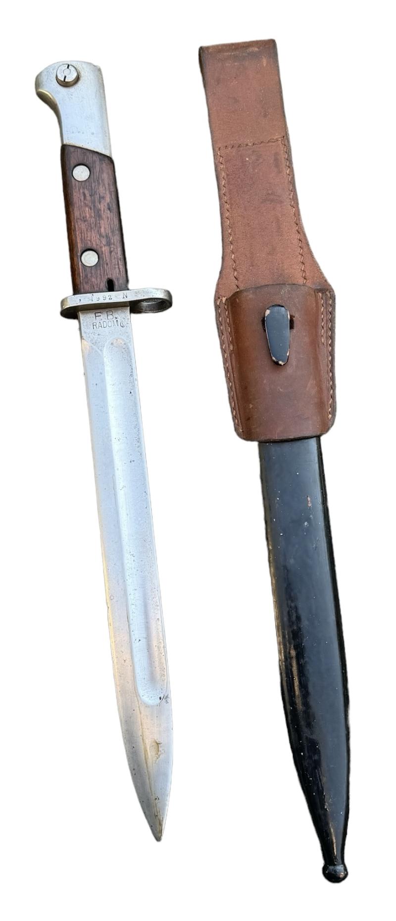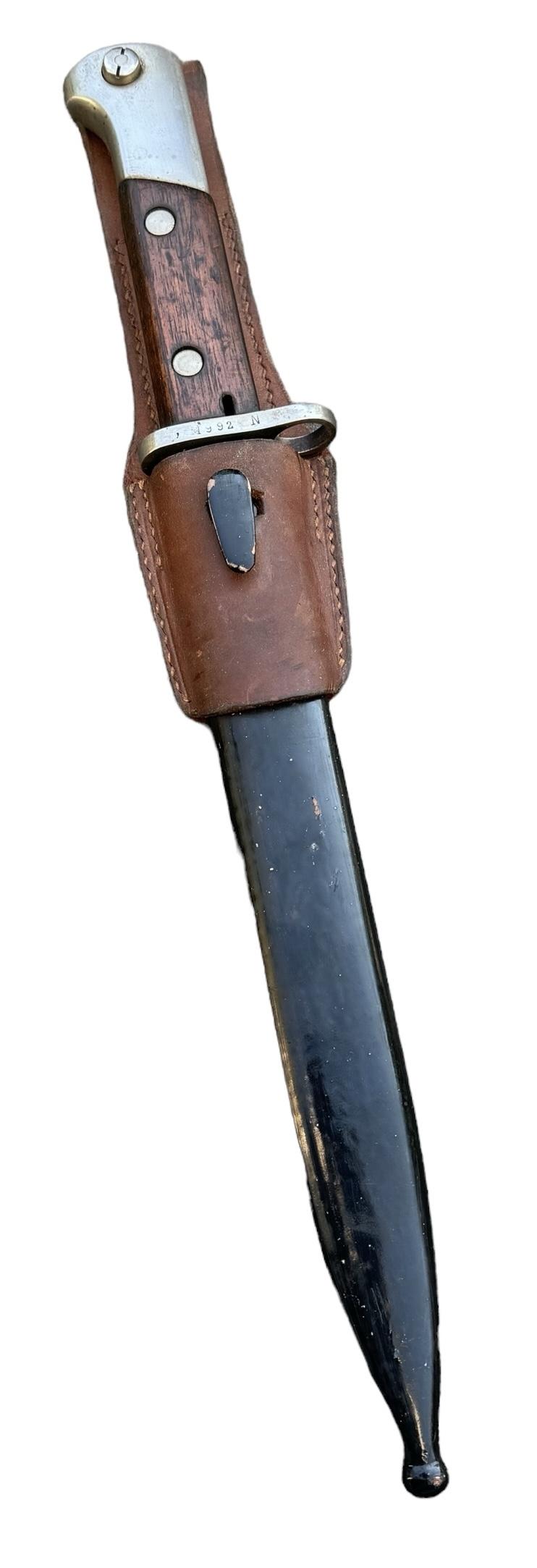 Very nice Polish WZ24 bayonet with original steel scabbard and leather frog.