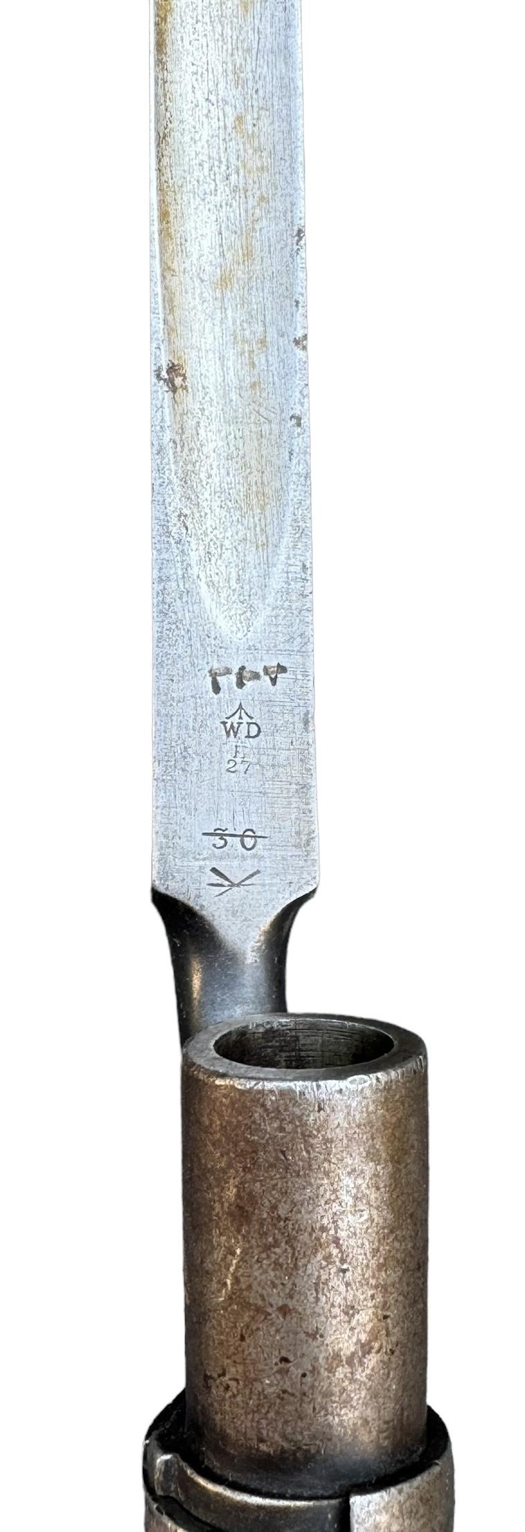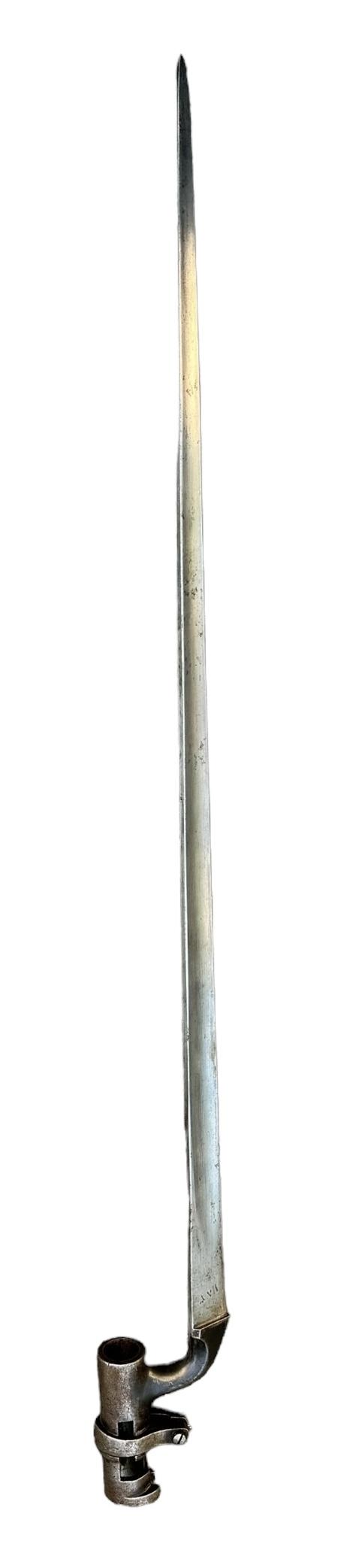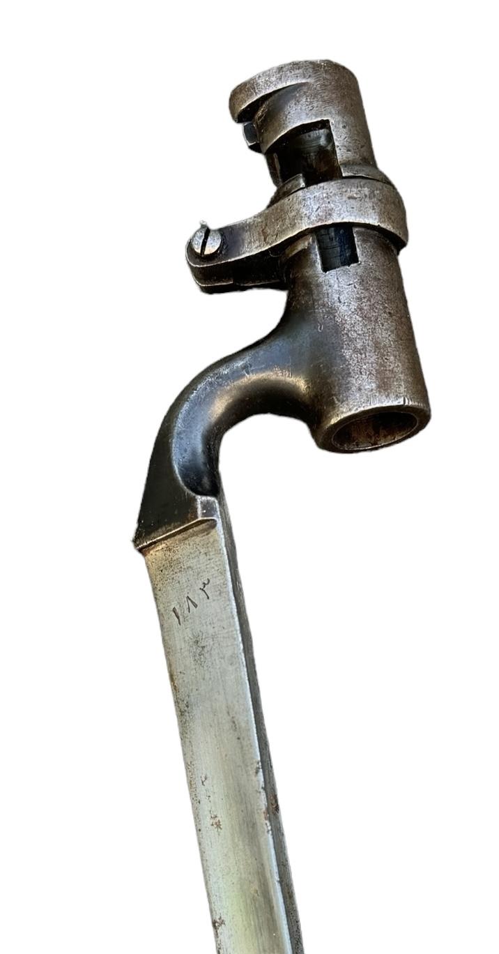 British Model 1876 Socket Bayonet Nice used British model 1876 socket bayonet for the “Martini Henry” rifle. “WD” (War Department) marked. In very good condition.