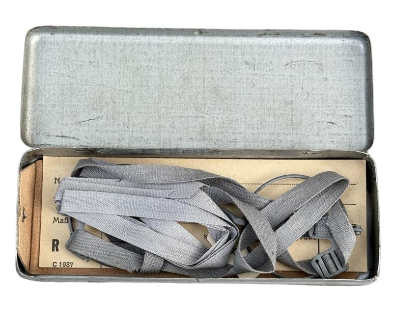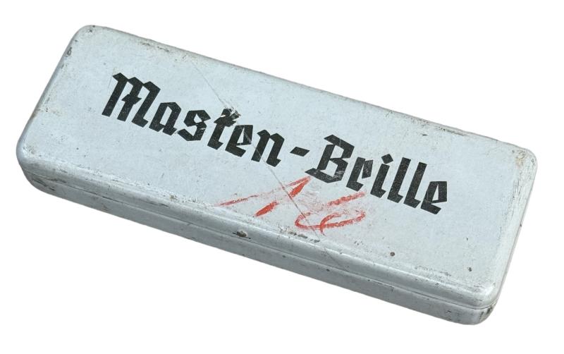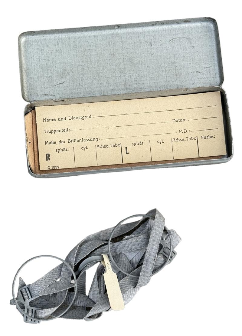 Very nice Wehrmacht masken brille frame in its original metal case and proscription document.