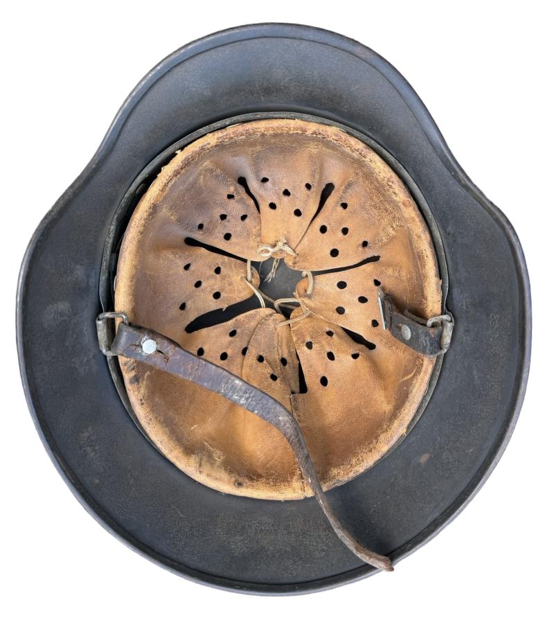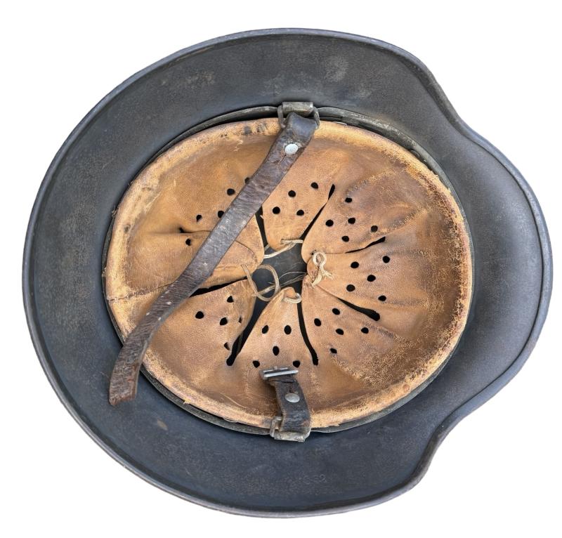 Complete with its original liner in size “55” and original leather helmet strap. (Part of the strap broken) helmet in 98% of its original Luftwaffe camo paint and decal in 92% condition. Overal a nice untouched Luftwaffe M40 SD helmet in very good condition.