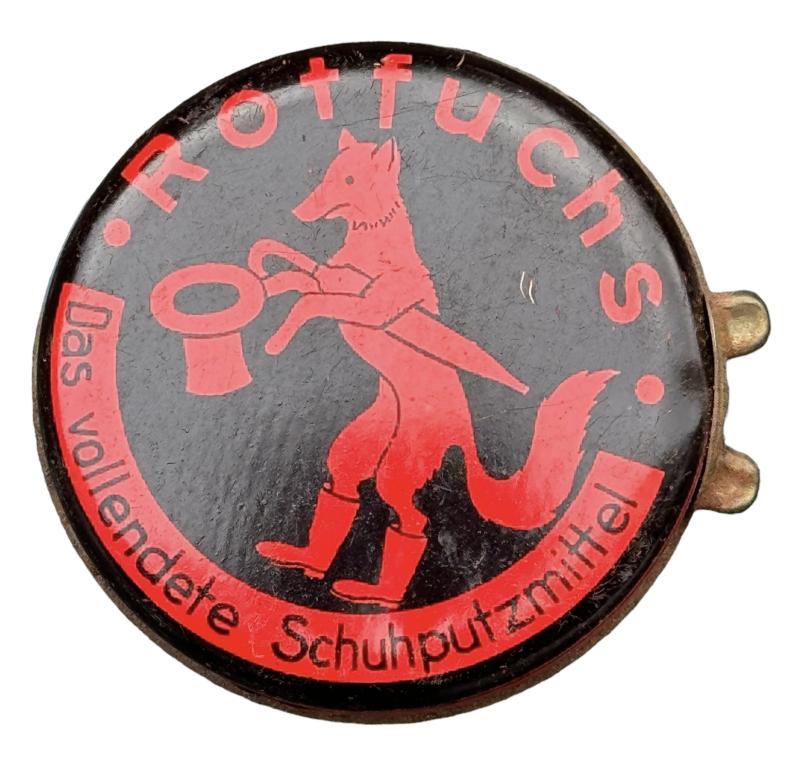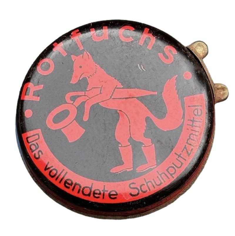 Wehrmacht era Shoe Polish Rothfuchs Nice decorative metal can of Wehrmacht era “Shoe Polish Rothfuchs” nice display item for a personal item collection. In very good condition.