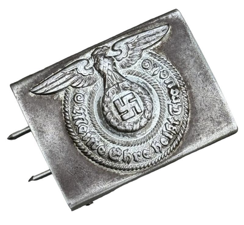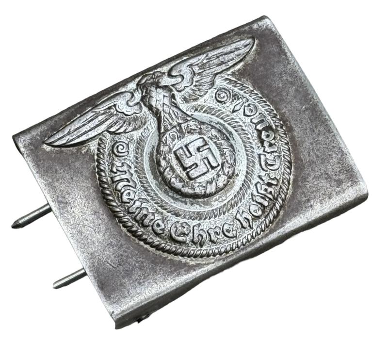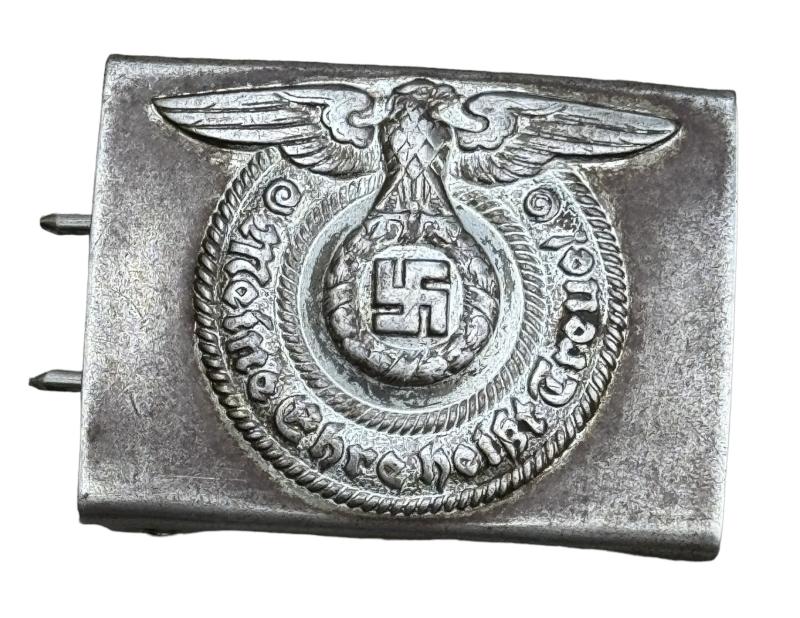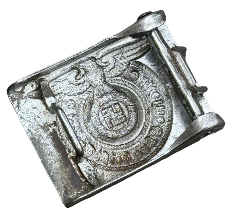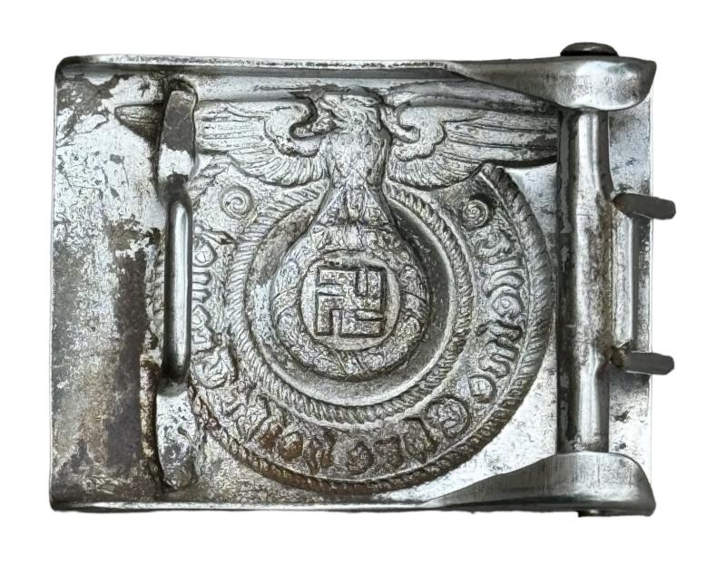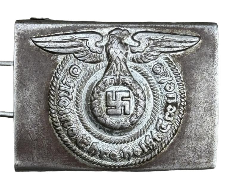WaffenSS steel Belt Buckle Used but nice original WaffenSS steel belt buckle. Non maker marked but textbook WaffenSS belt buckle in used but good condition.
