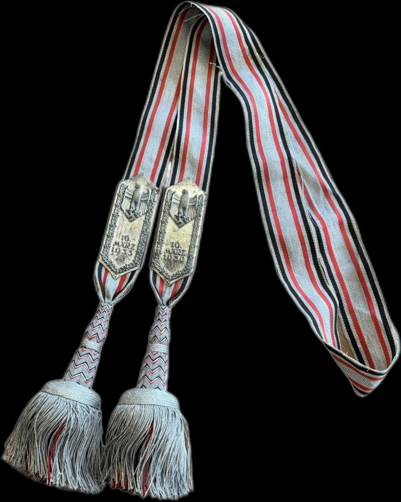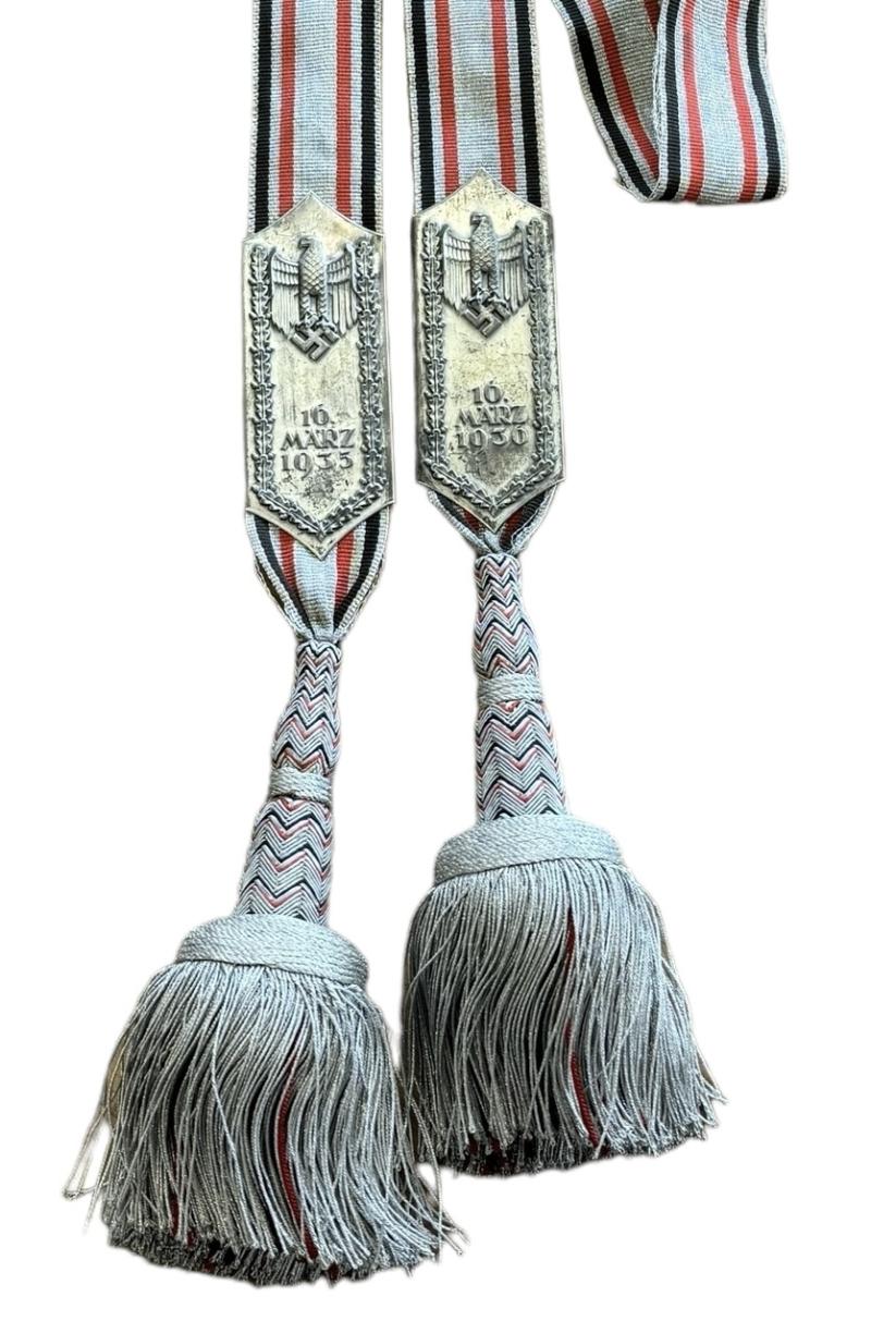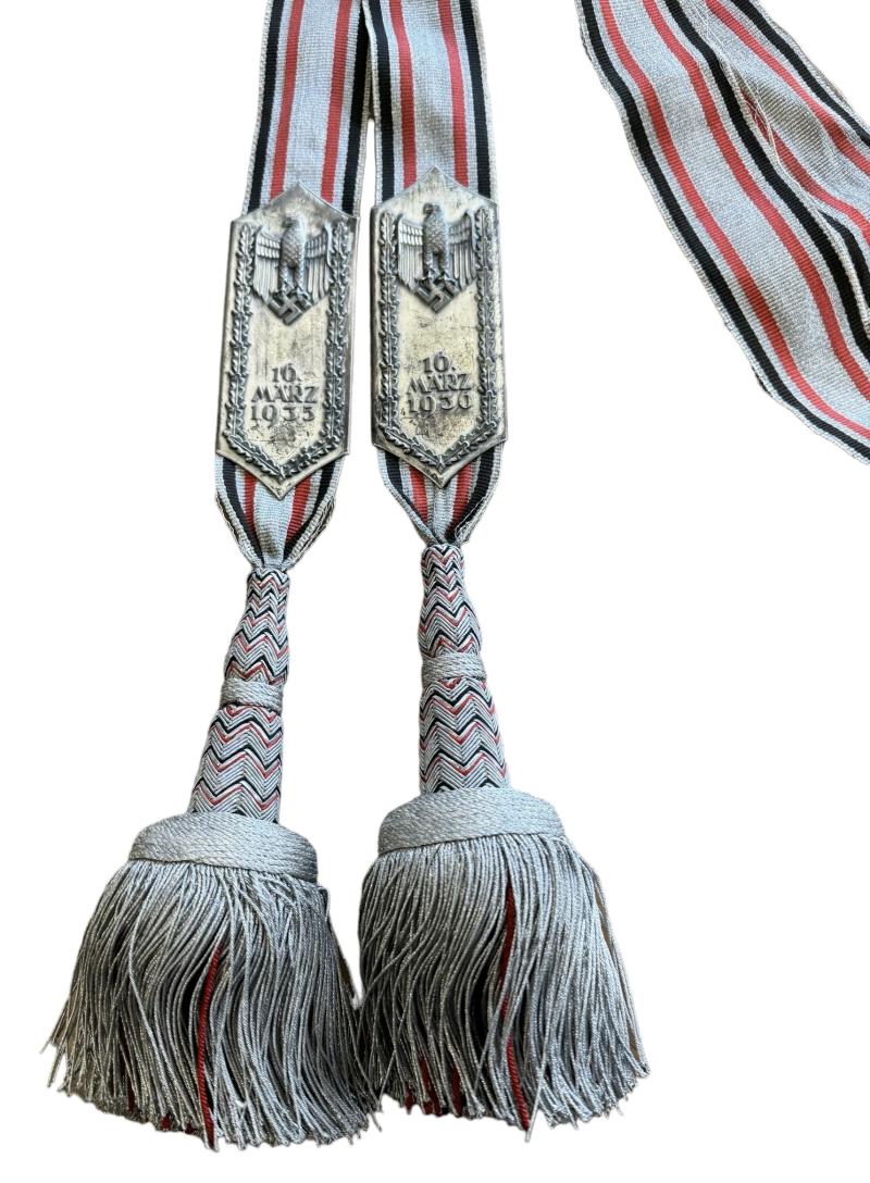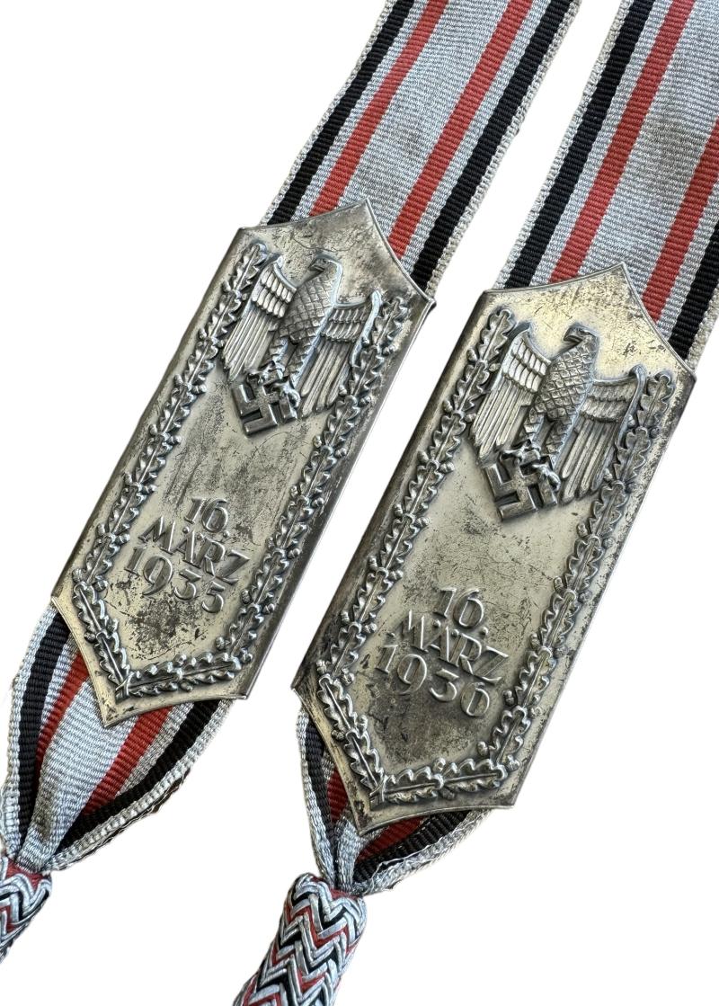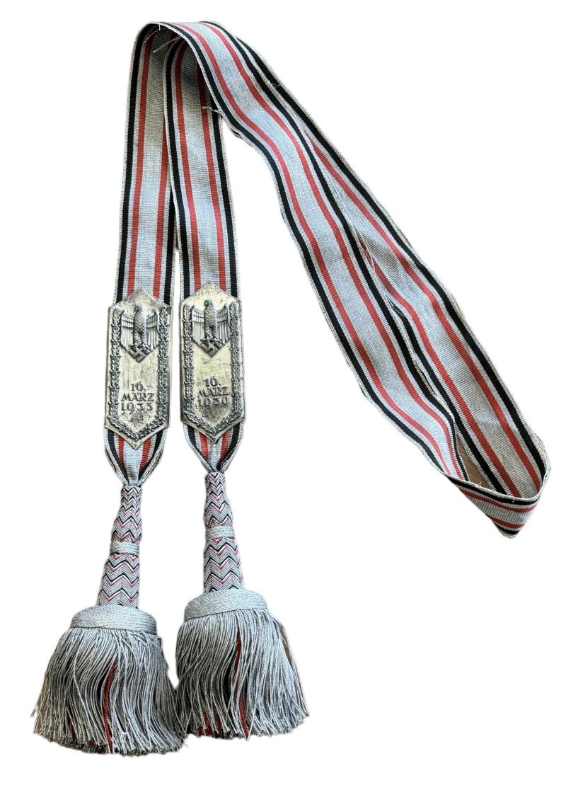 March “1935-1936” introduced and therefore “1935-1936” dated with Wehrmacht eagles on light metal plated on the streamers. In used but very good condition! Rare to find!!!