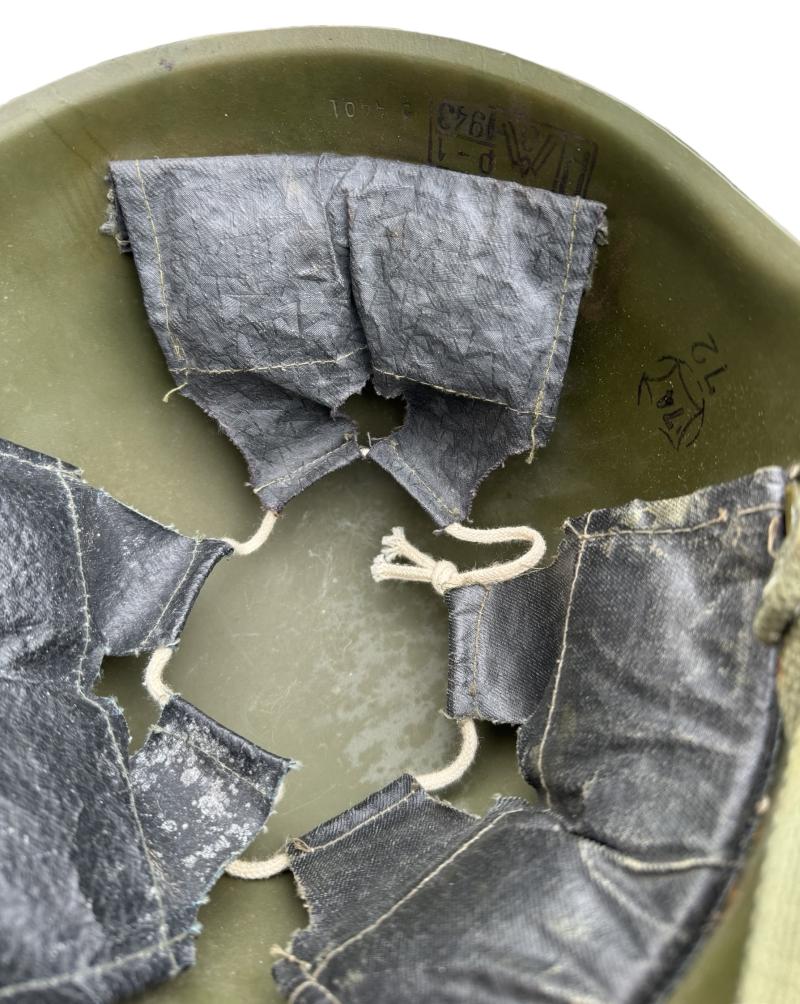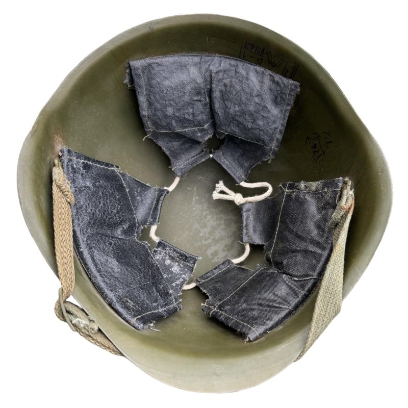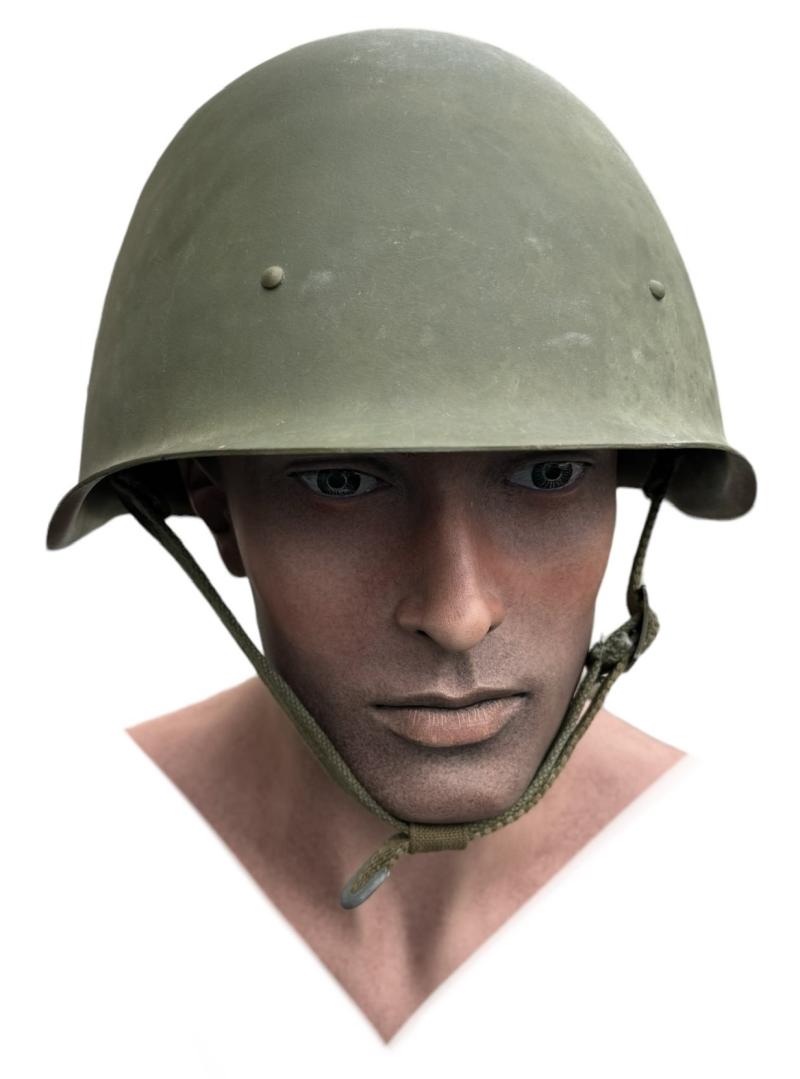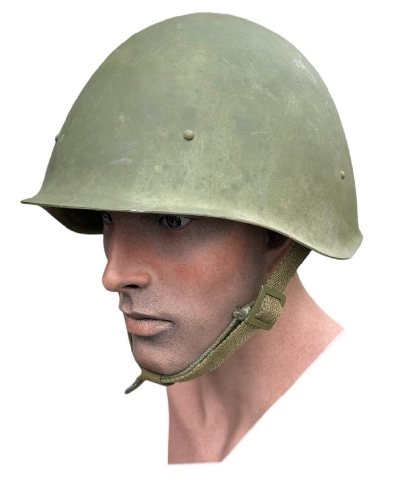 Mint condition Soviet WW2 “SSH40” combat helmet with its original liner and webbing combat helmet strap. In extreme good condition. Factory marked and dated “1943”. Great for a helmet collection or to complete a Soviet WW2 mannequin.