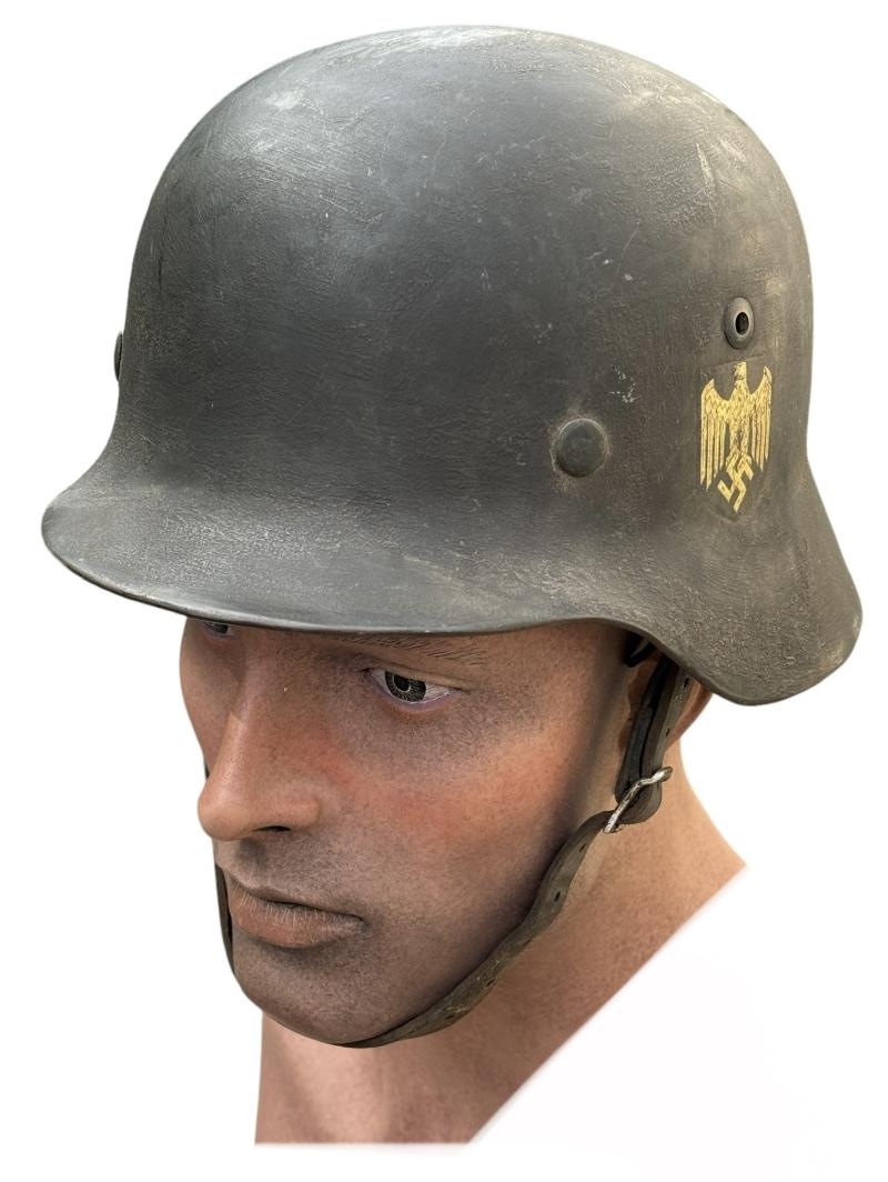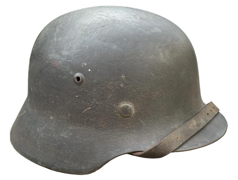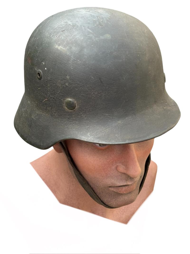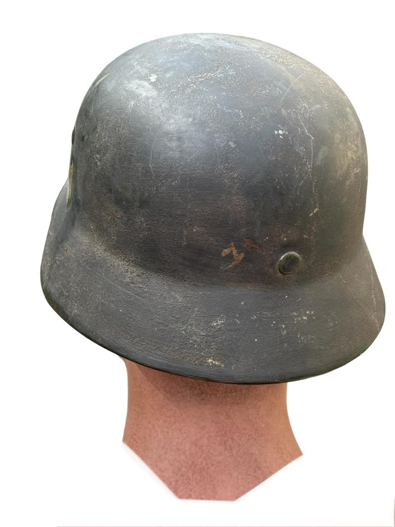 The helmet was in olive green camo paint and in “1940” repainted with rough structure camo paint.