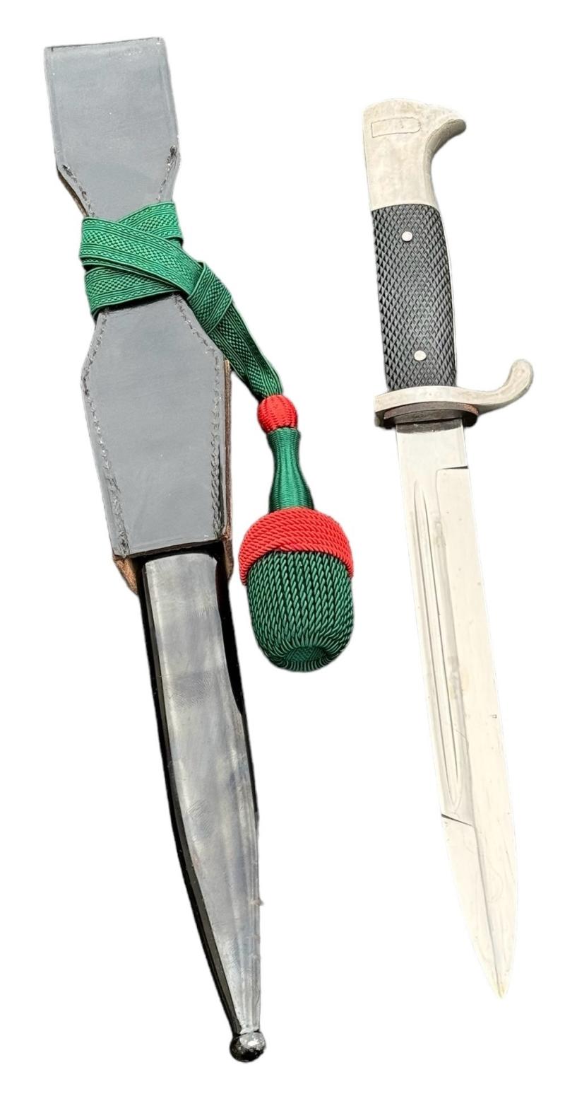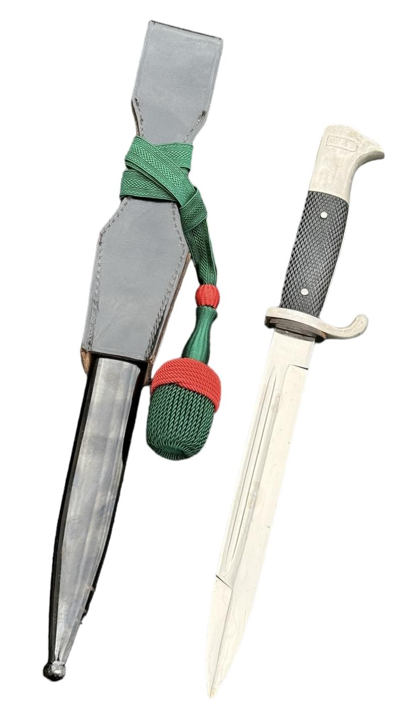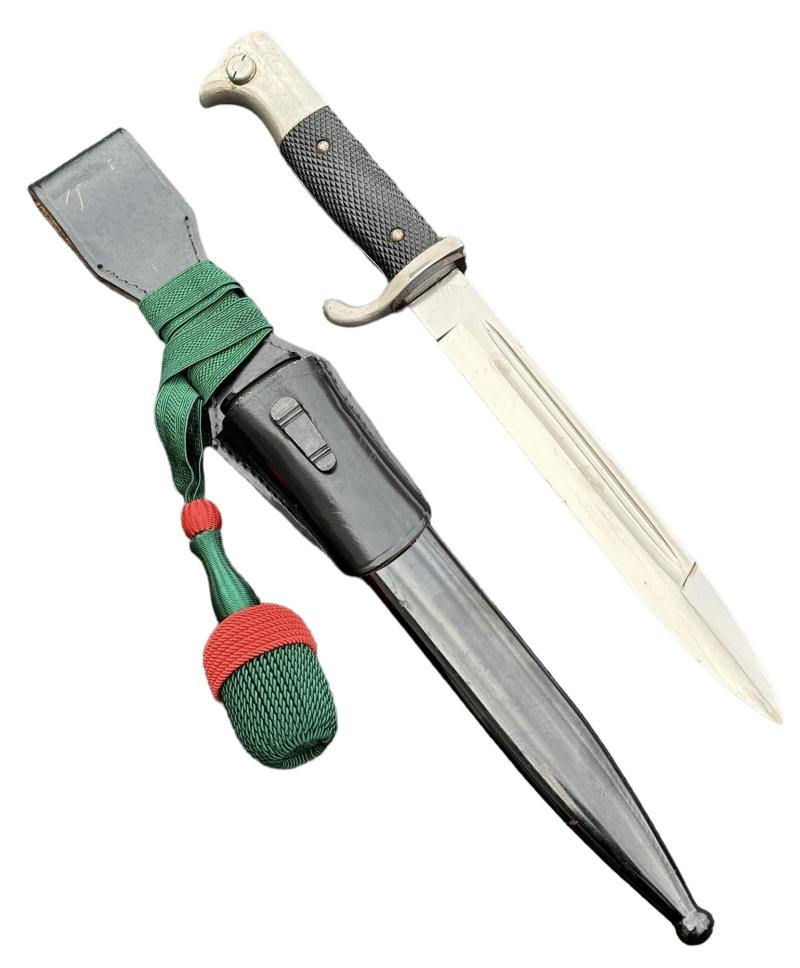 Very nice used Wehrmacht dress bayonet with Porte Pé and frog. Made by “F.W. Höller, Solingen”