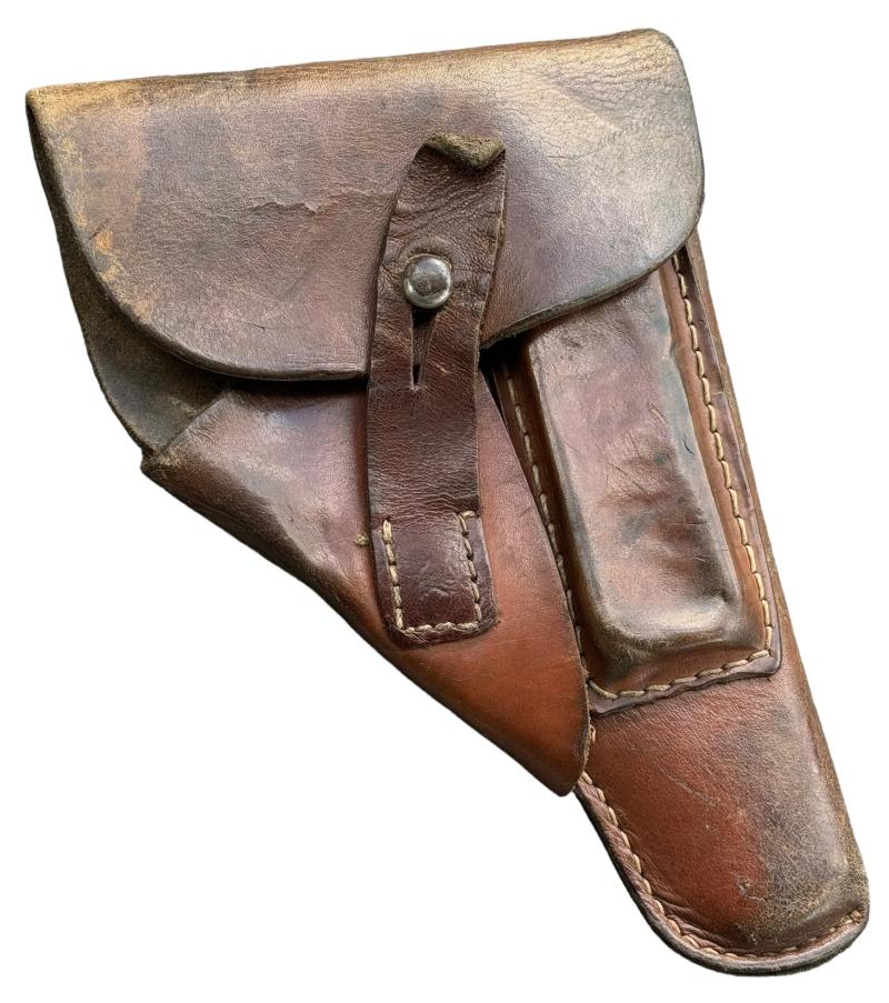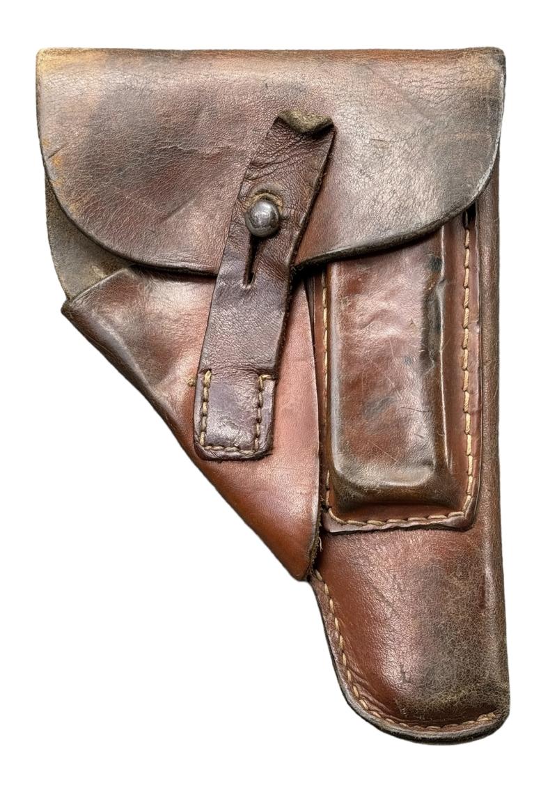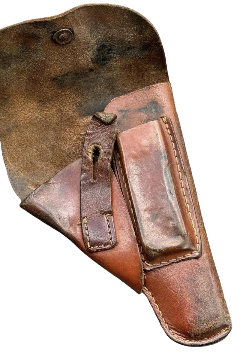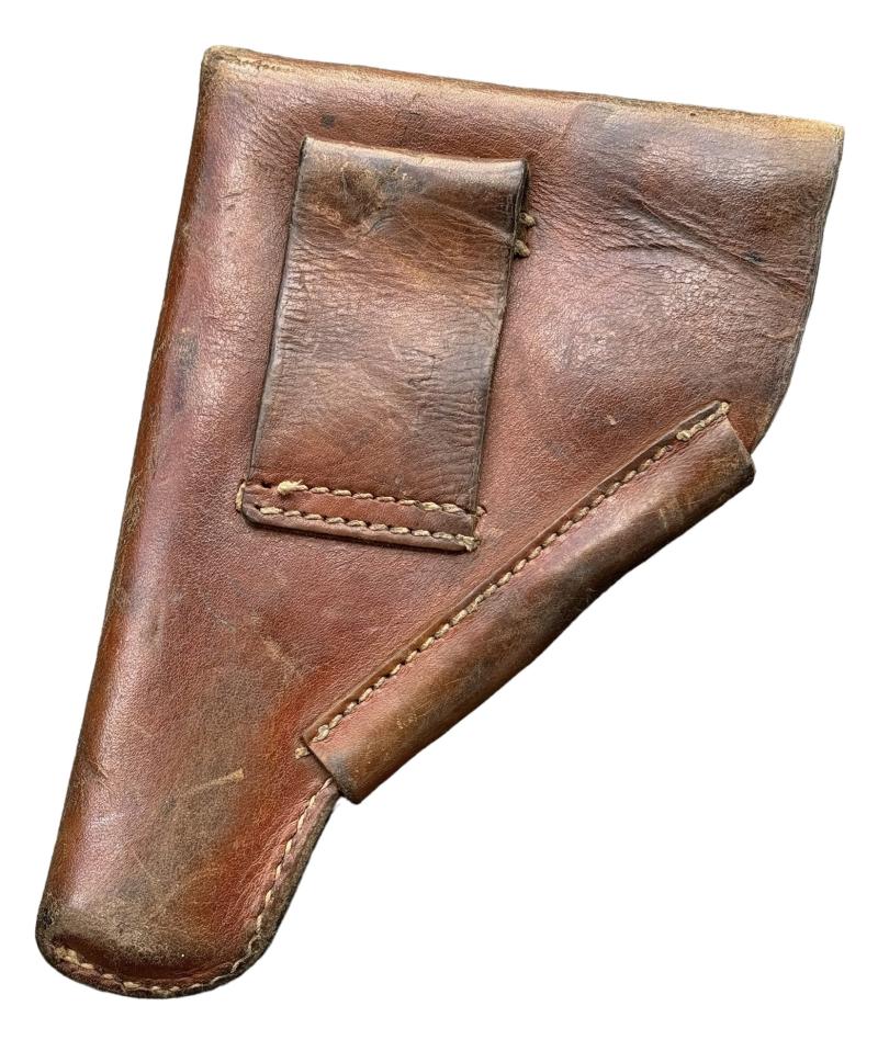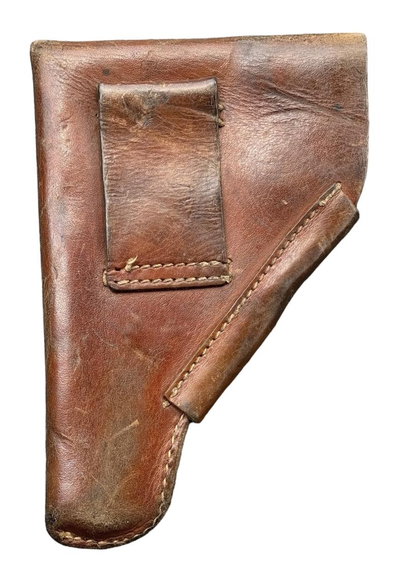 Nice smooth brown leather Wehrmacht “Walter” PPK pistol holster. non maker marked leather holster for a side arm for Wehrmacht Officers and NCO’s