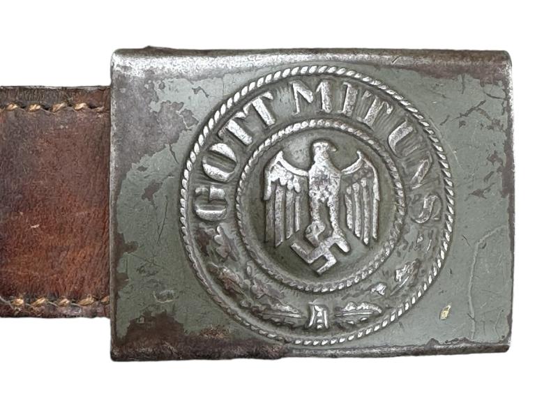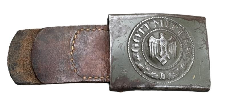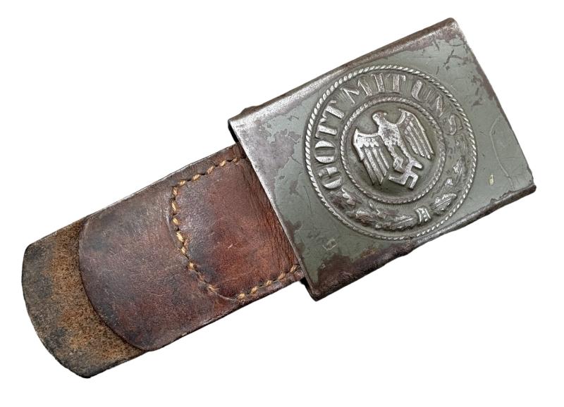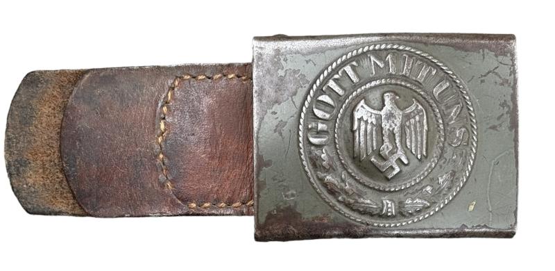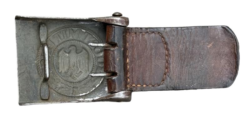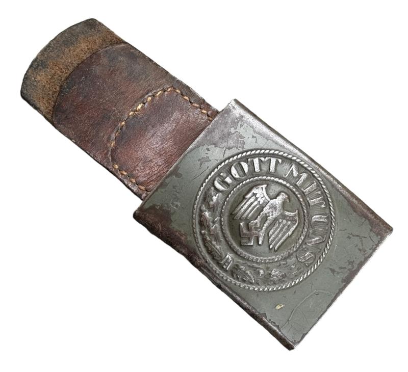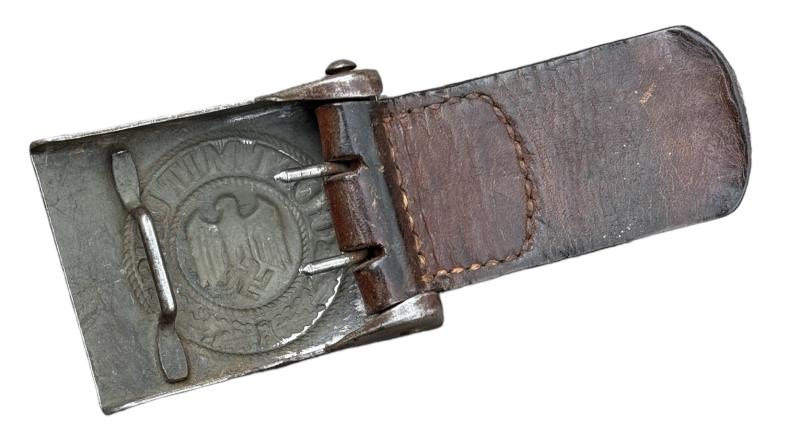 Wehrmacht steel Belt Buckle with leather Tab
