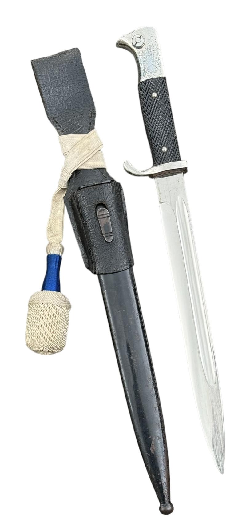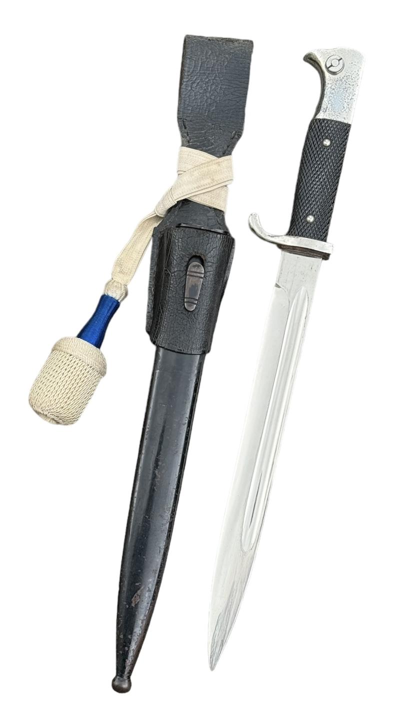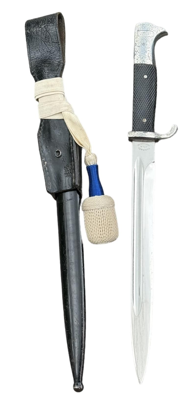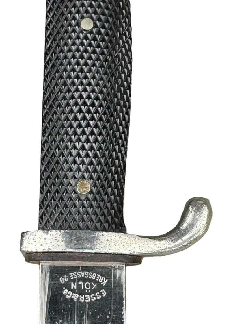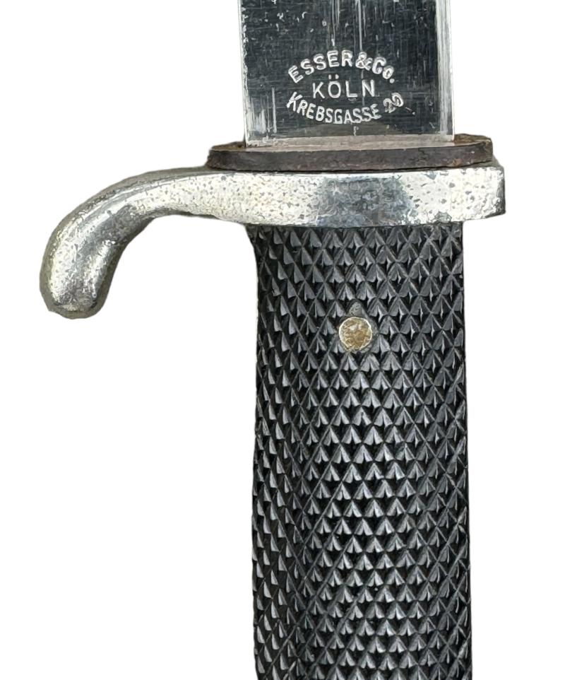 Very nice used Wehrmacht dress bayonet with Porte Pé and frog. Made by “Esser & Co., Köln, Krebsgasse 20” less common maker!