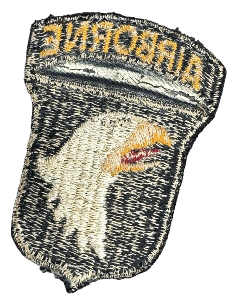 US WW2 101th Airborne Division Patch Very nice used sample of a nice original US WW2 101th Airborne patch with fixed “Airborne” tab In very good condition!