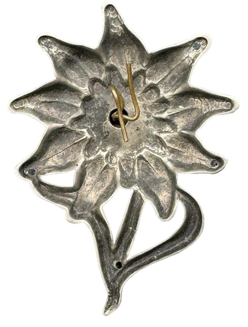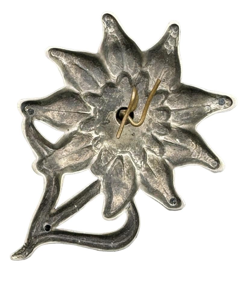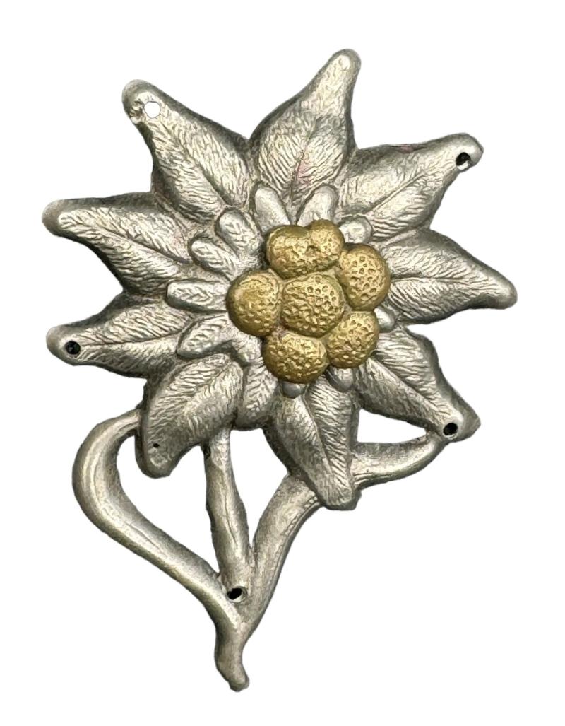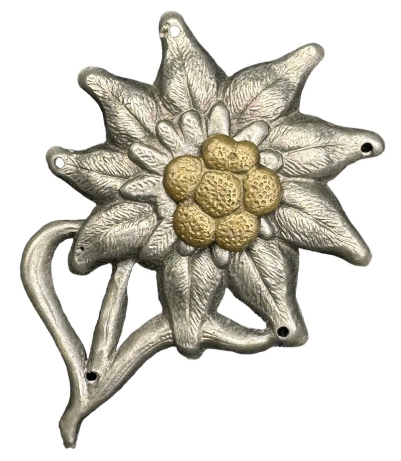 Wehrmacht Metal Cap Edelweiss Very nice metal Wehrmacht cap edelweiss for Wehrmacht Gebirgsjägers In very good condition.