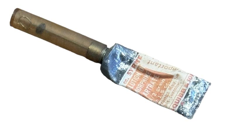 US WW2 Morphine Packaging Rare to find US WW2 military “Morphine” packaging (needle) used for the heavy combat wounded (Notice!!!! no content!) in used but very good condition. Rare to find! Great for display!