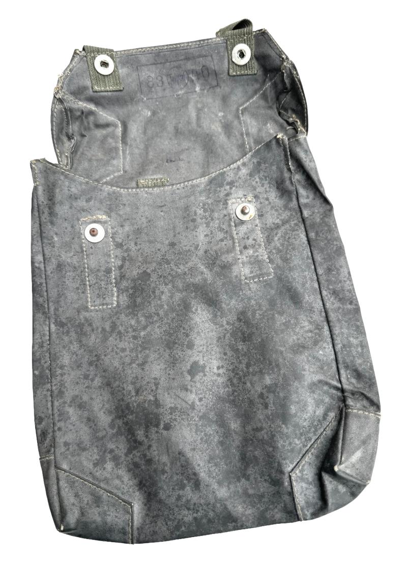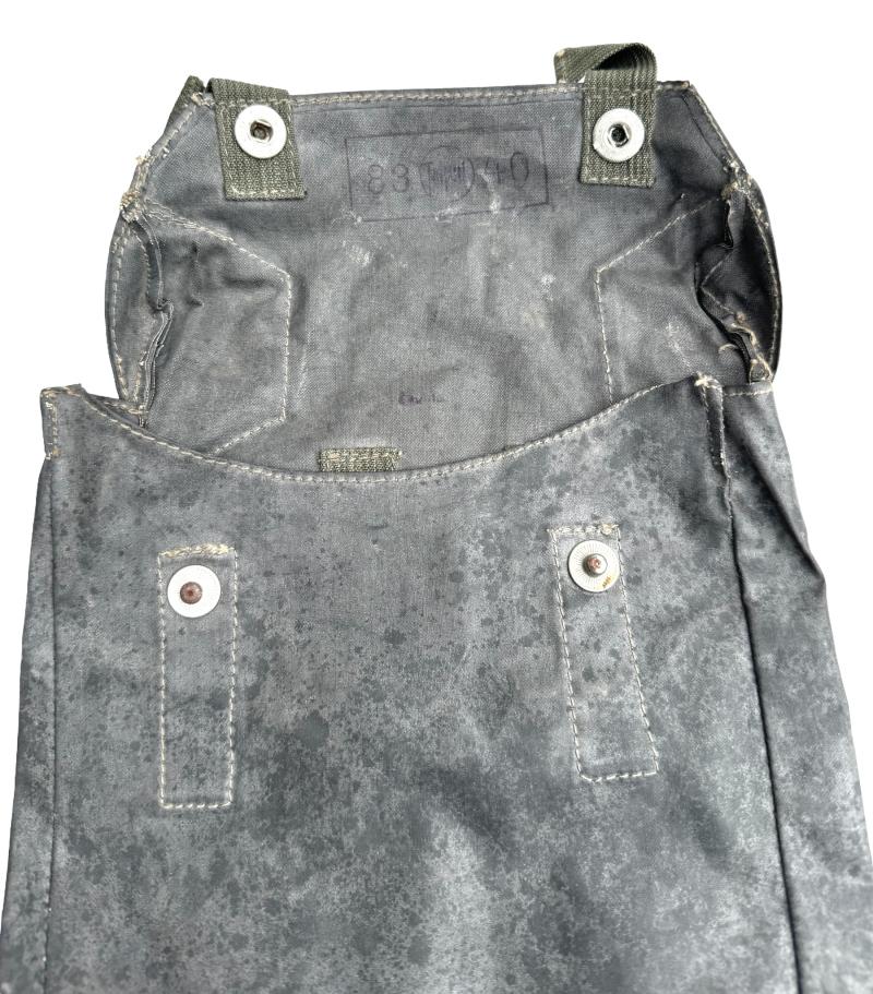 The carrying pouch is rubberized and would be carried with its loops on its back on the long gasmask cannister strap, or with an leather equipment strap against the M31 gasmask cannister it self.
