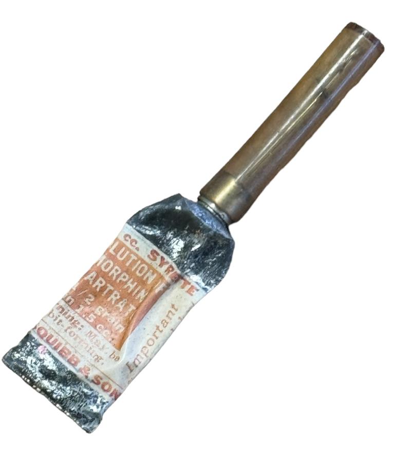 US WW2 Morphine Packaging Rare to find US WW2 military “Morphine” packaging (needle) used for the heavy combat wounded (Notice!!!! no content!) in used but very good condition. Rare to find! Great for display!