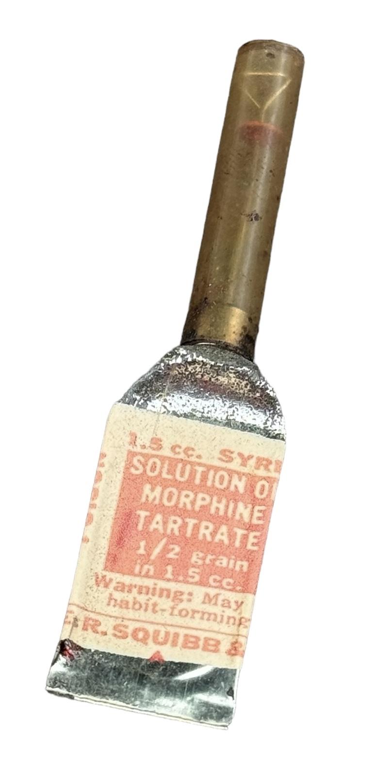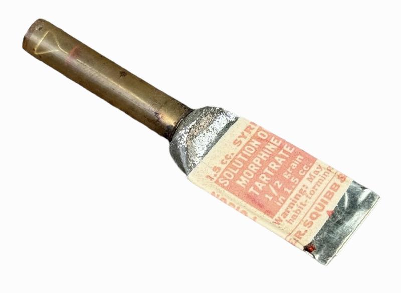 US WW2 Morphine Packaging Rare to find US WW2 military “Morphine” packaging (needle) used for the heavy combat wounded (Notice!!!! no content!) in used but very good condition. Rare to find! Great for display!